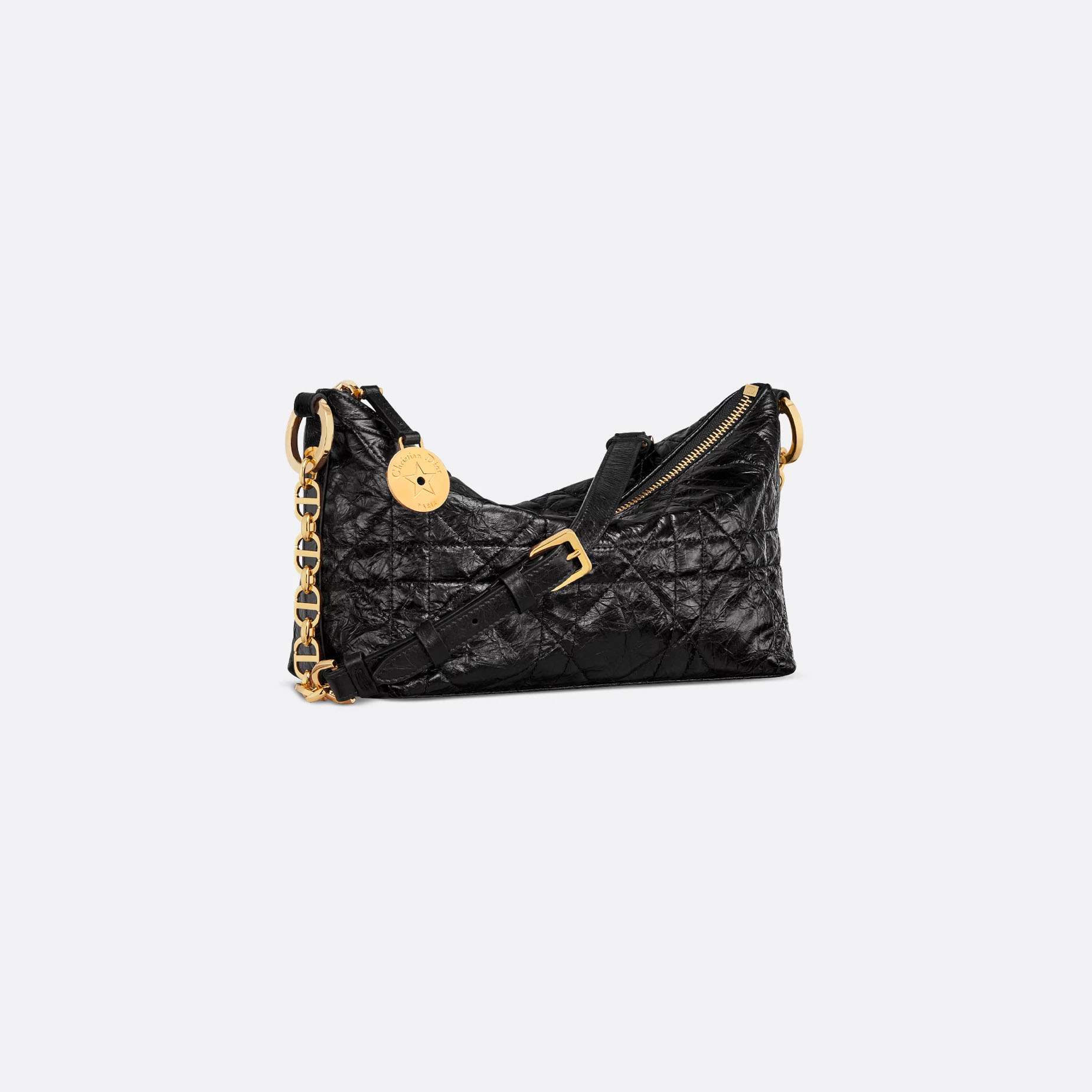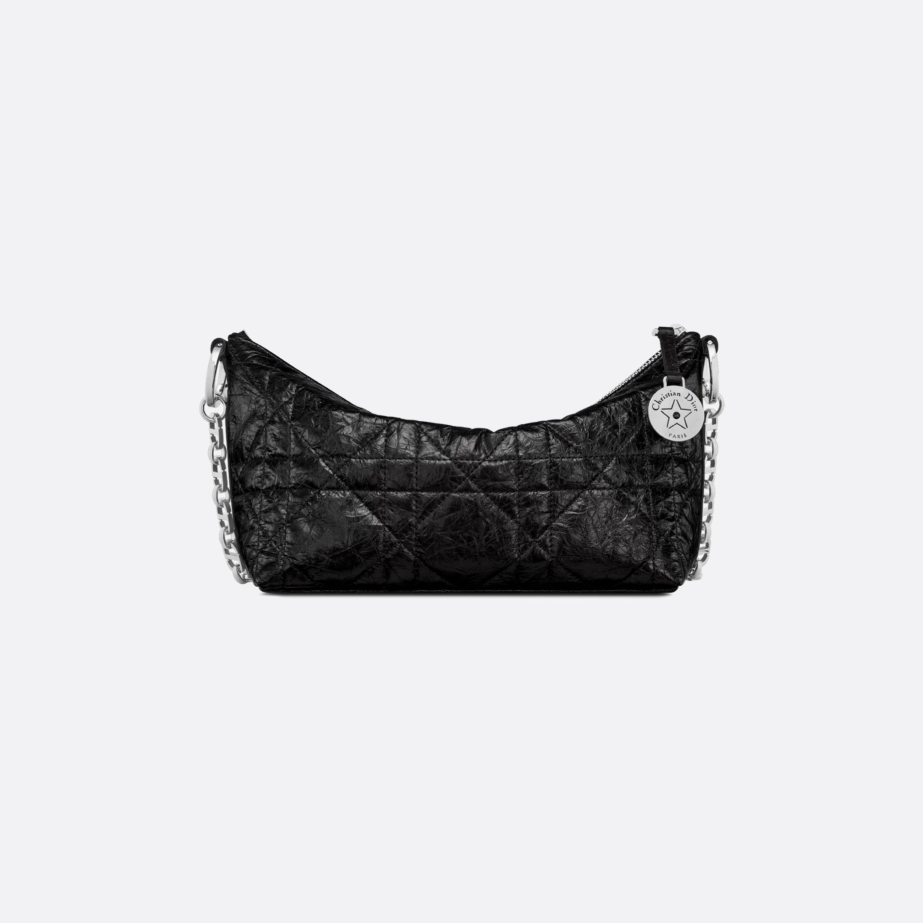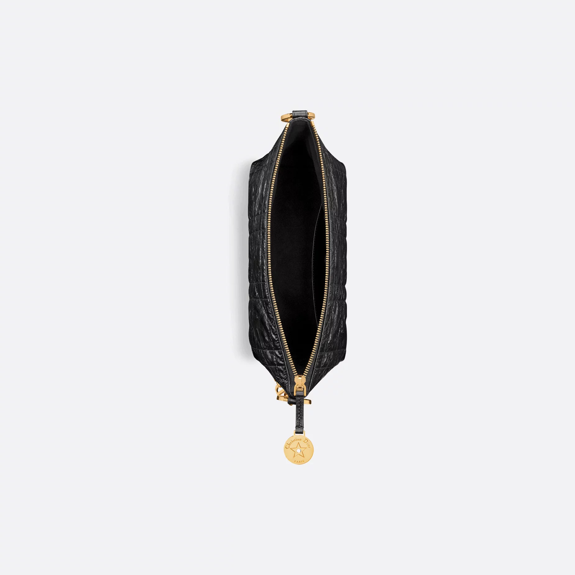 Dior Diorstar Hobo With Chain Black Macrocannage Crinkled Calfskin Gold/Silver Hardware