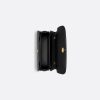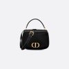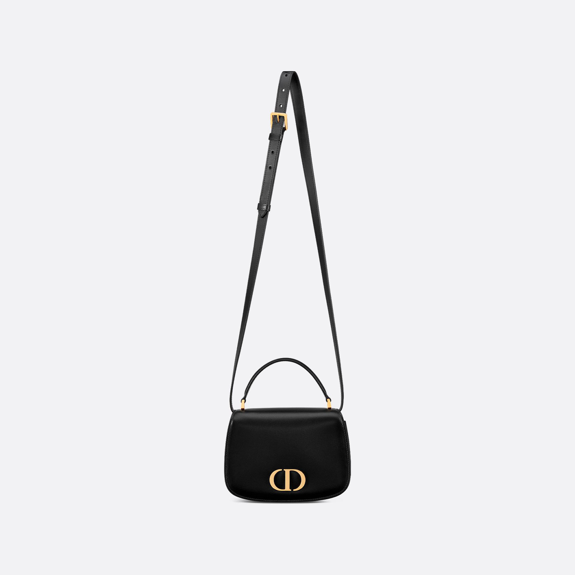 The 30 Montaigne Avenue Top Handle bag stands out with a streamlined silhouette and modern, refined aesthetic. Showcasing House savoir-faire, the style is made in a luxurious and durable black calfskin defined by its finely ribbed texture. The design features a flap adorned with the CD signature in antique gold-finish metal which opens to a double gusset compartment, while the rear slip pocket enhances its practicality. The leather top handle and adjustable, removable strap allow the small bag to be carried by hand, worn over the shoulder or crossbody.