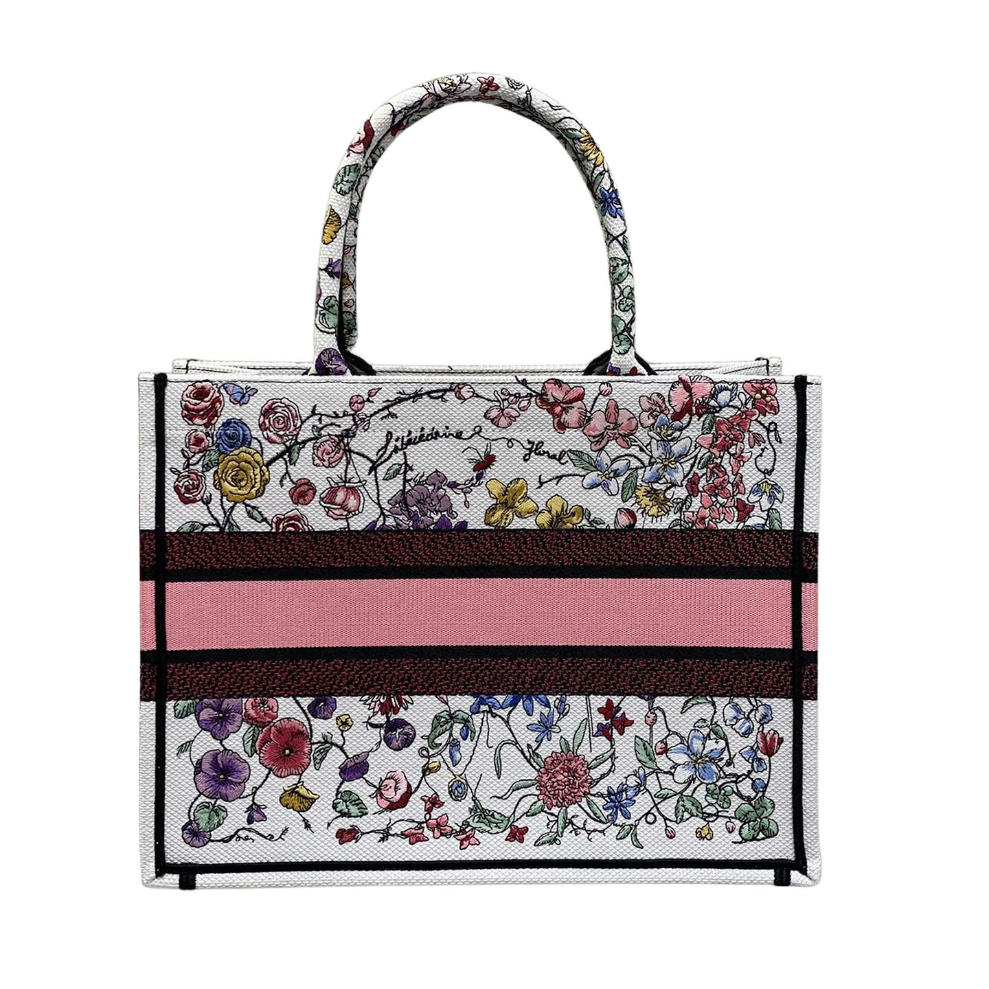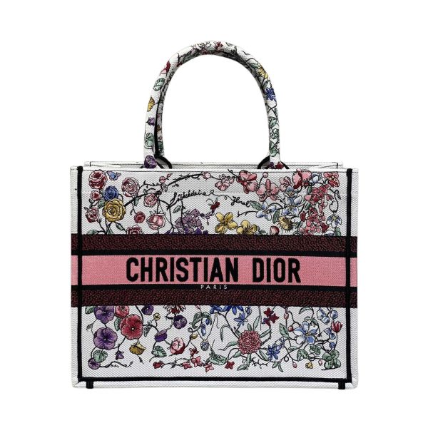 Dior Medium Book Tote White Multicolor Florilegio Embroidery