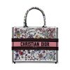 Dior Medium Book Tote White Pastel Pink Butterfly Around The World Embroidered Canvas
