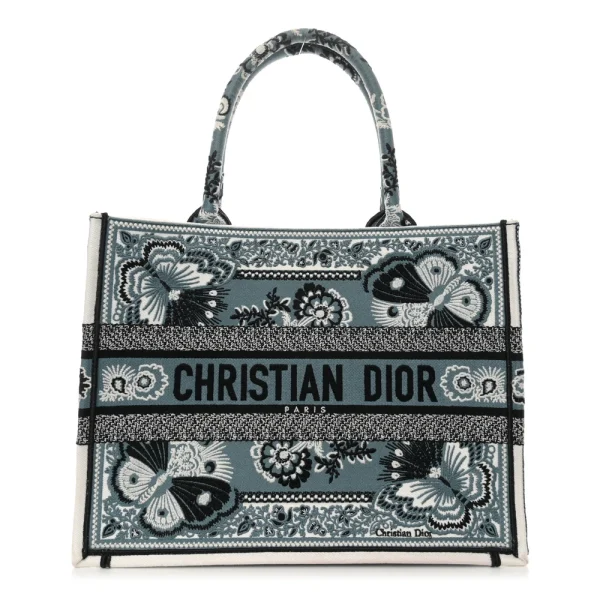 This Dior Medium Butterfly Bandana Book Tote in Blue Embroidered Canvas is an artistic masterpiece. The intricate butterfly and bandana embroidery create a unique visual appeal. Spacious and durable, it’s perfect for work, travel, or leisure. Lightweight canvas ensures practicality without compromising style. A striking accessory that reflects Dior’s heritage. Add a touch of art to your daily essentials.