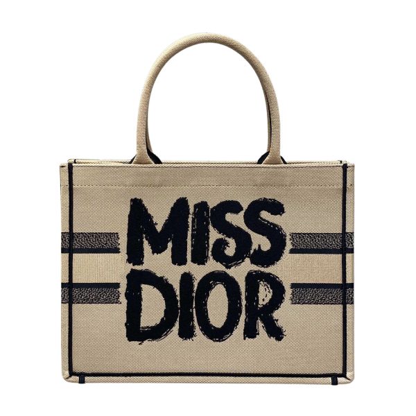 Dior Medium Dior Book Tote Beige And Black Miss Dior Graffiti Embroidery