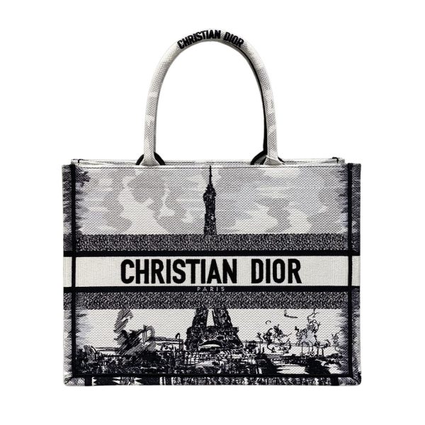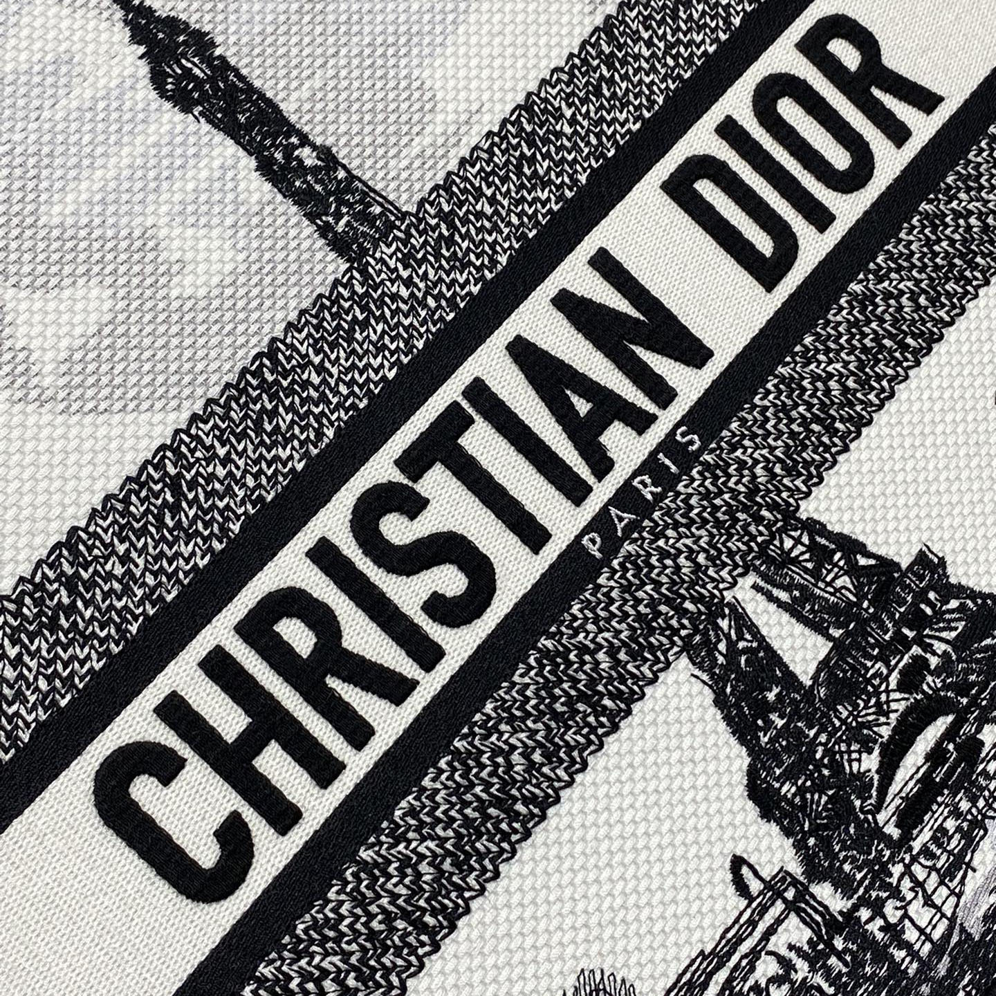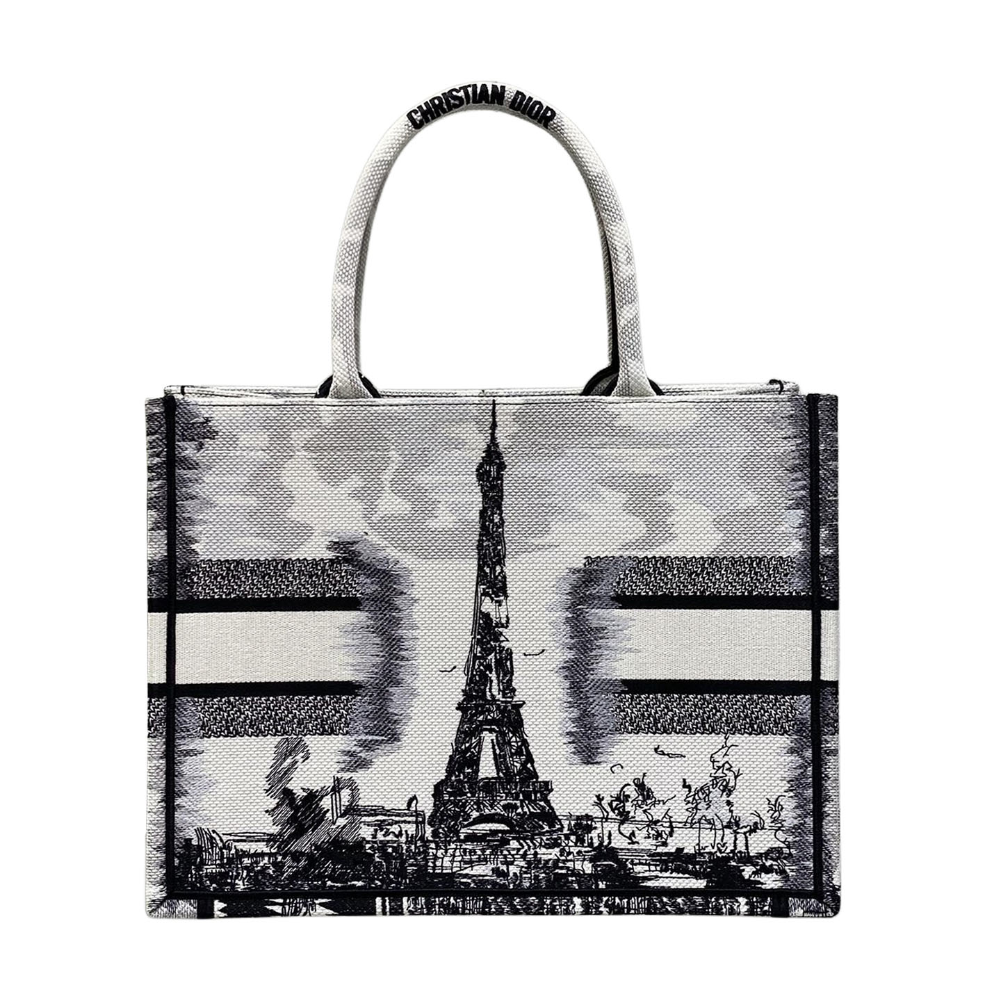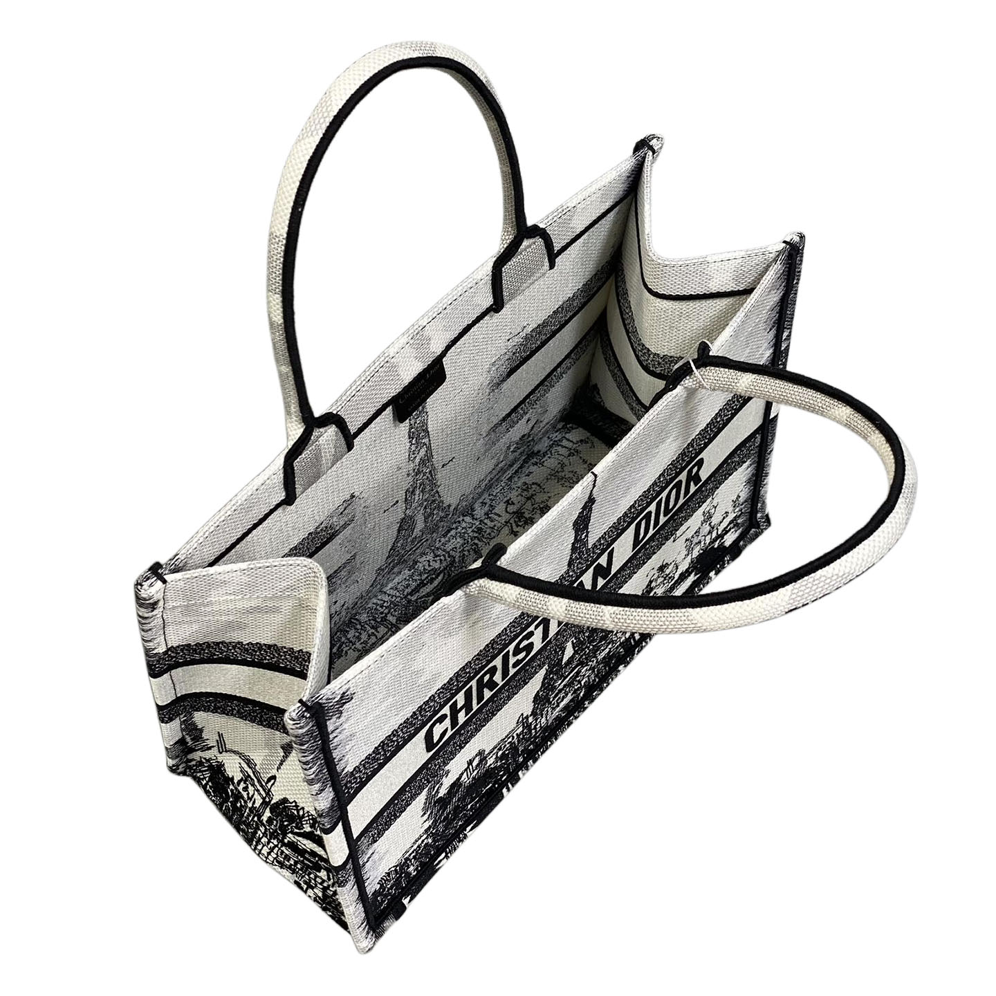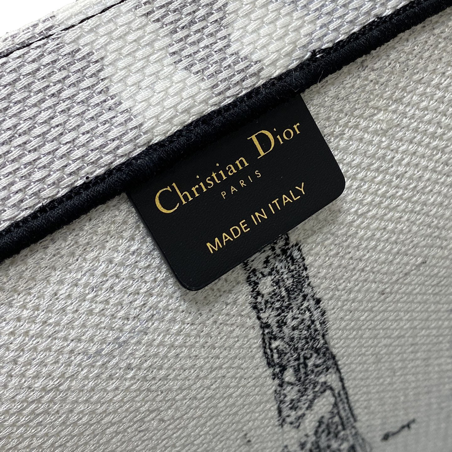 Dior Medium Dior Book Tote White and Black Paris Embroidery