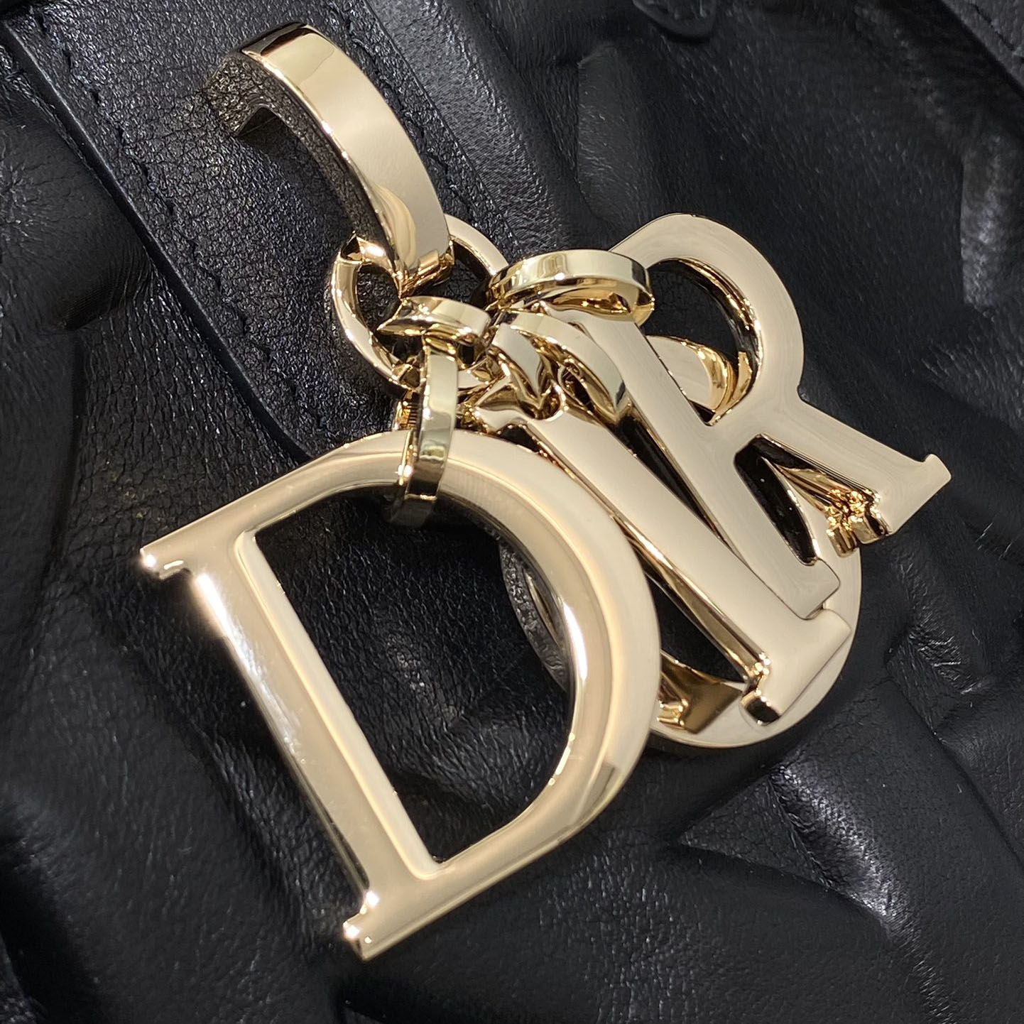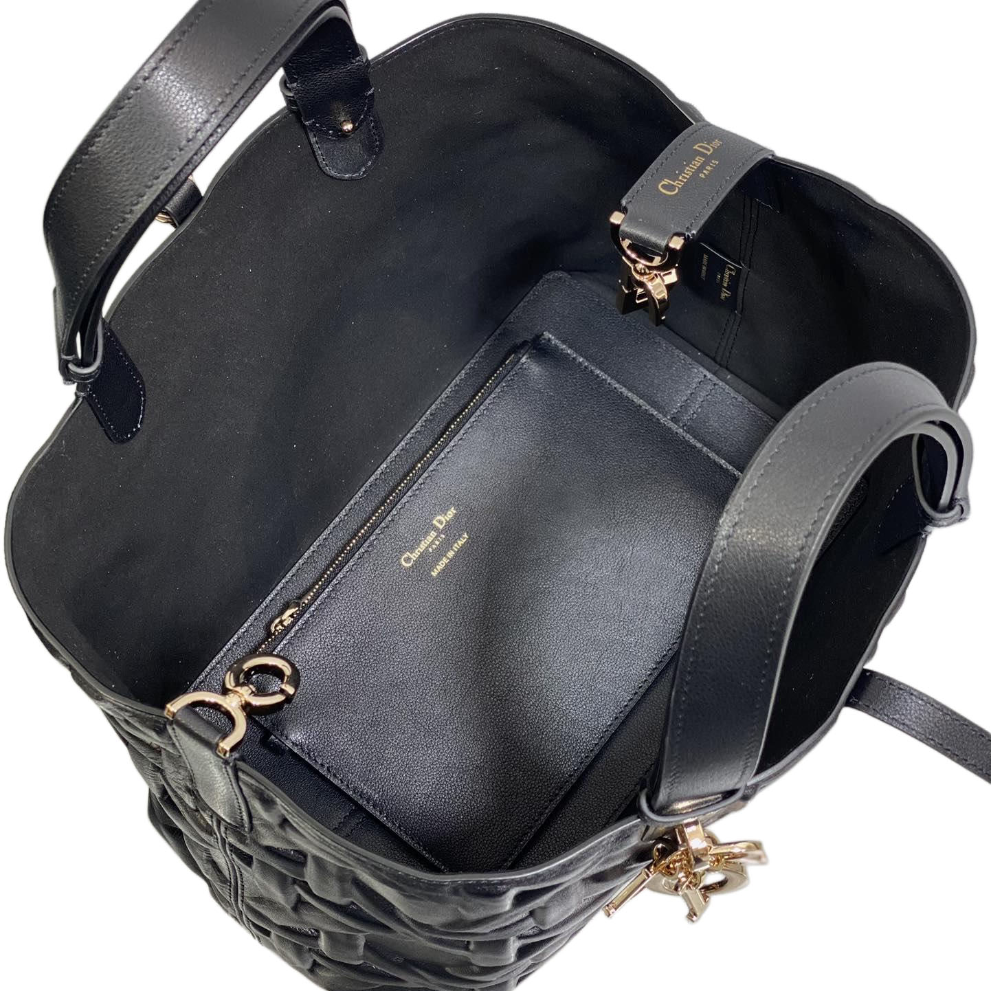 The Dior Toujours bag is distinguished by a casual and practical design. Crafted in Black Graphic Cannage Calfskin, it showcases a spacious interior compartment with a matching pouch to organize the essentials. Its thin leather strap closure keeps items secure while the D of the CD Lock clasp twists to adjust the sides and enhance the bag’s silhouette. The leather top handles can be adjusted using the small notches so the medium bag can be carried by hand or worn over the shoulder.