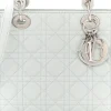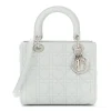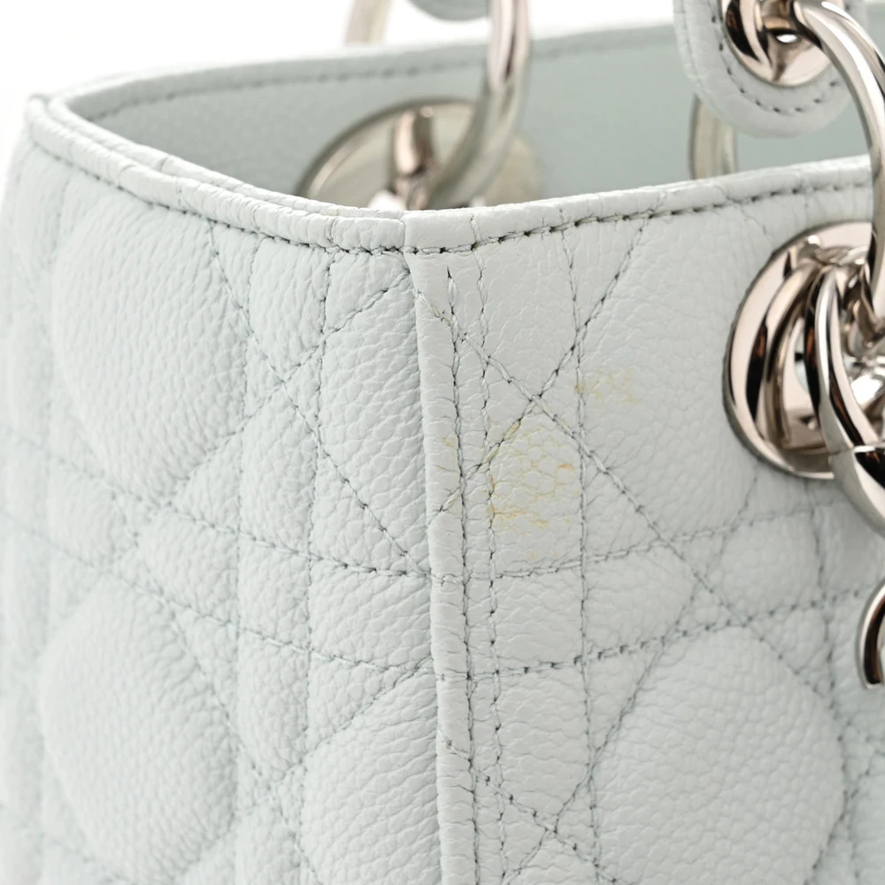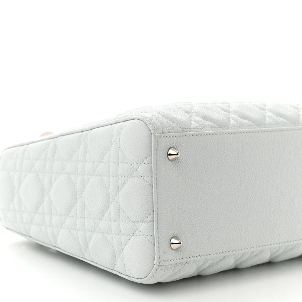 Dior Medium Lady Dior White Grained Cannage Calfskin Leather Silver Hardware
