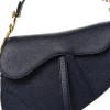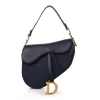 Dior Medium Saddle Bag Navy Blue Grained Calfskin Leather Gold Hardware