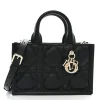 This Dior Mini Book Tote in Black Macrocannage Calfskin Leather is a compact and elegant piece. Light gold hardware complements its luxurious design, making it perfect for casual outings or formal occasions. A timeless addition for Dior collectors.