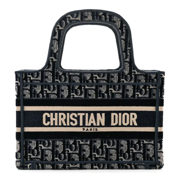 Dior Mini Book Tote Blue Velvet Oblique Embroidered