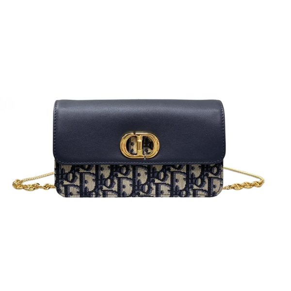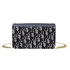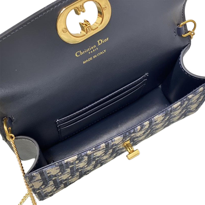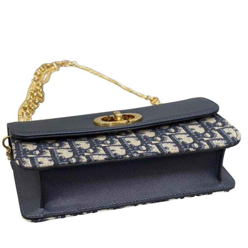 Dior Miss Caro Pouch with Chain In Blue Dior Oblique Jacquard and Smooth Calfskin Gold Hardware