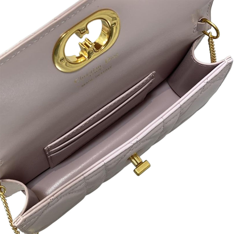 Dior Miss Caro Pouch with Chain In Pink/Blue/White/Black Macrocannage Lambskin Gold Hardware