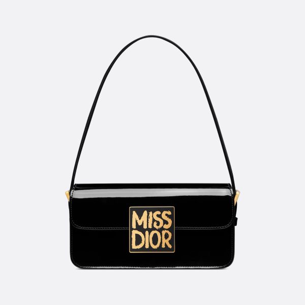 Dior Miss Dior Flap Bag In Black Patent Calfskin With Gold Hardware
