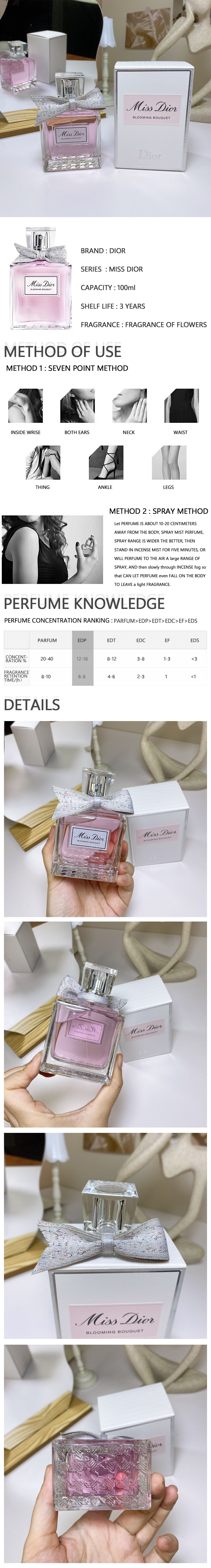 About the Fragrance: “”Make me a fragrance that smells like love,”” Christian Dior said when he imagined his first fragrance, Miss Dior, in 1947. Today, Blooming Bouquet is an instant pleasure, a delicate fragrance that makes a declaration like love at first sight.