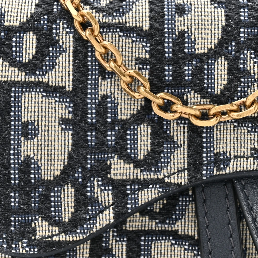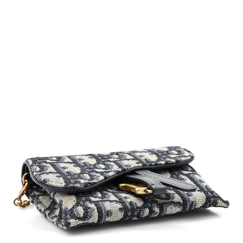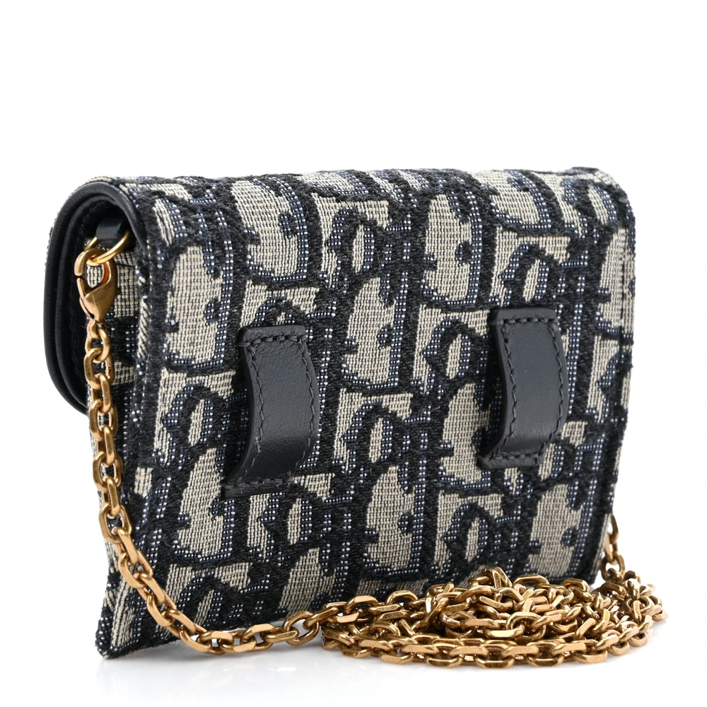 Dior Nano Saddle Chain Pouch Blue Oblique Canvas Gold Hardware
