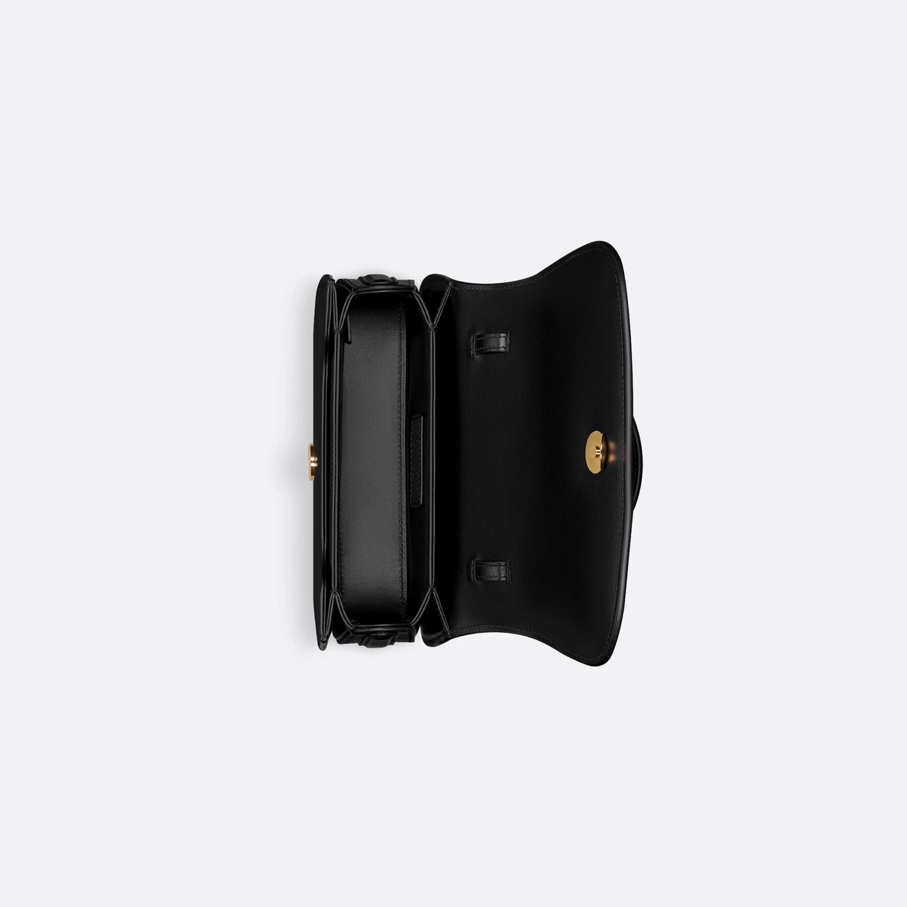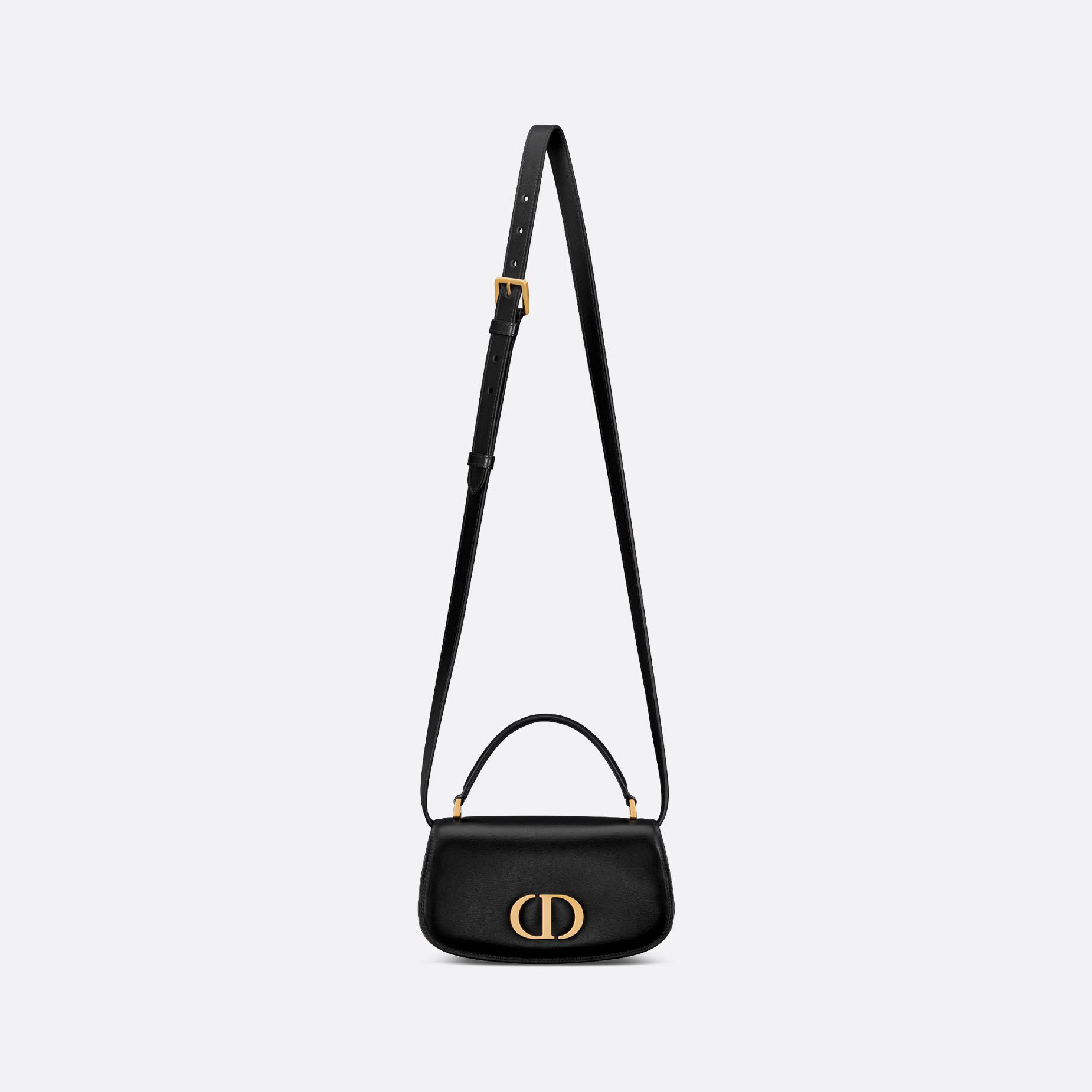 New for Winter 2024, the 30 Montaigne Avenue Top Handle bag stands out with a streamlined silhouette and modern, refined aesthetic. Showcasing House savoir-faire, the style is made in a luxurious and durable black calfskin defined by its finely ribbed texture. The design features a flap adorned with the CD signature in antique gold-finish metal which opens to a double gusset compartment, while the rear slip pocket enhances its practicality. The leather top handle and adjustable, removable strap allow the small bag to be carried by hand, worn over the shoulder or crossbody.