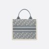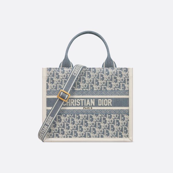 Dior Small Dior Book Tote In Blue Dior Oblique Chambray-Effect Embroidery Canvas and Calfskin Gold Hardware