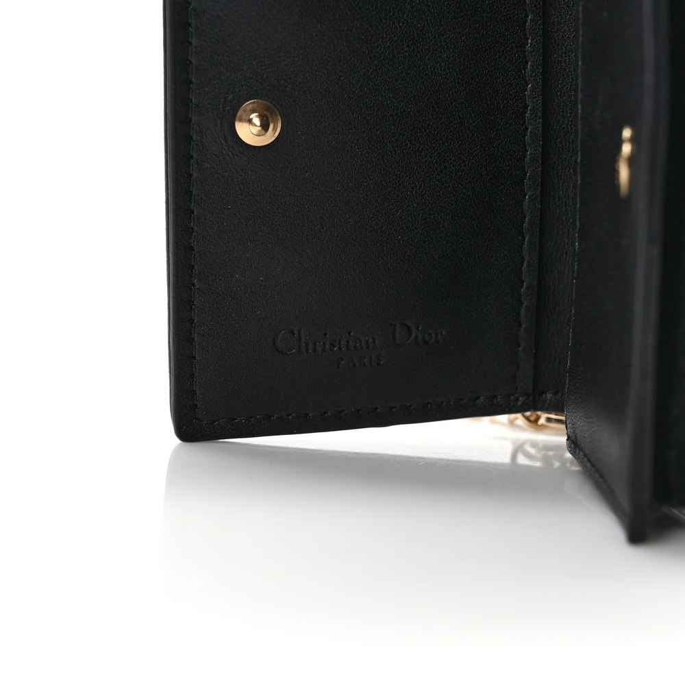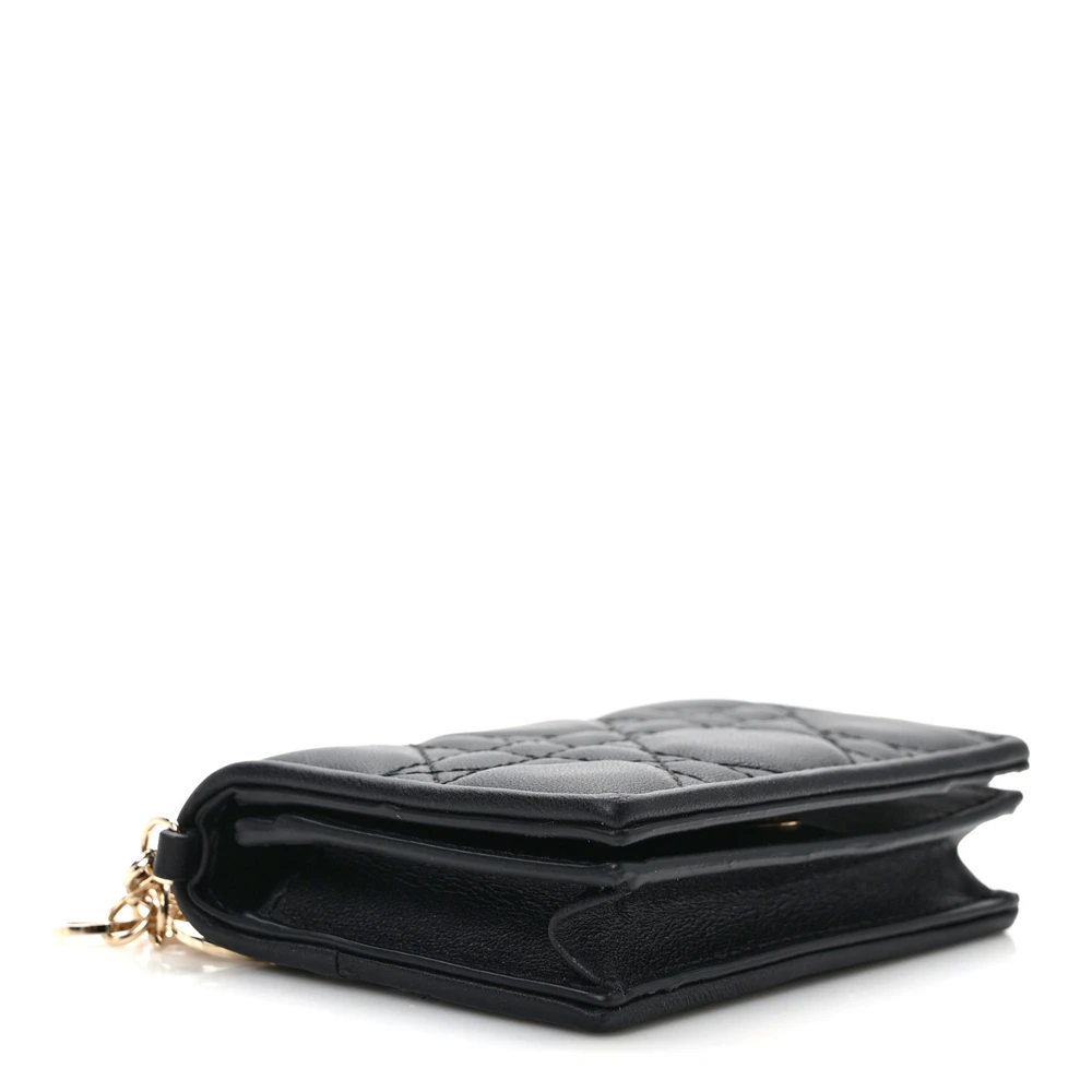 Dior Small Lady Dior Flap Card Holder Black Cannage Lambskin Leather Gold Hardware