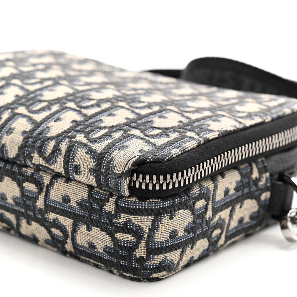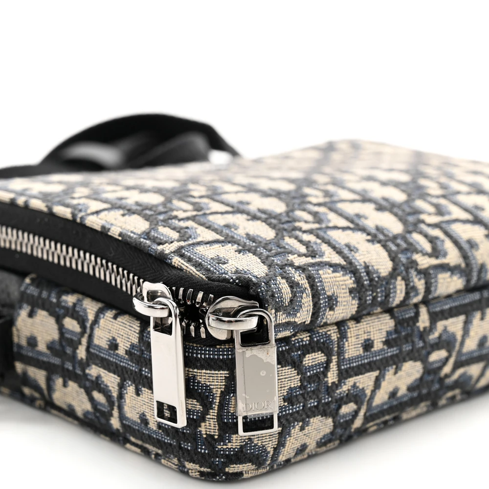 Dior Small Saddle Messenger Pouch Blue Oblique Canvas Silver Hardware