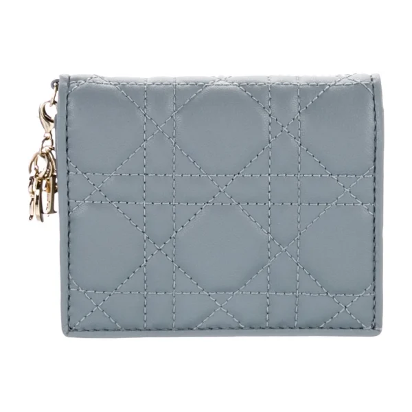 Dior Small Wallet Blue Cannage Pattern Leather Gold Hardware