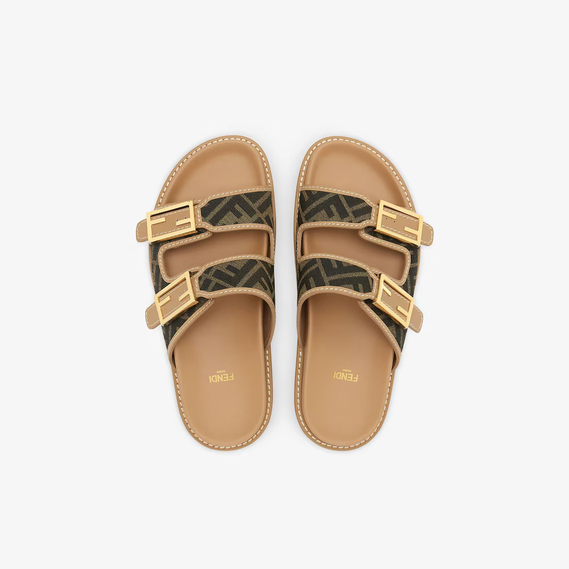 FENDI Brown FF fabric sandals