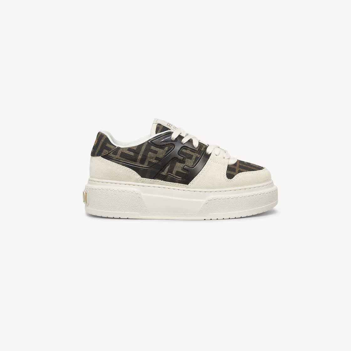FENDI Brown white suede canvas platform shoes Sneakers