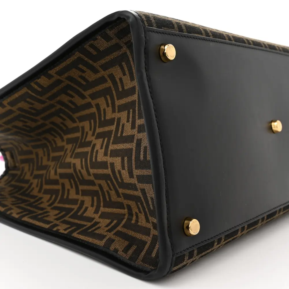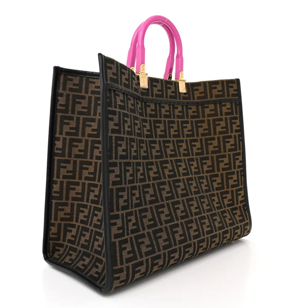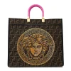 Fendi Large Fendace FF Medusa Studded Fendi Sunshine Shopper Tote (F x V) Marrone/Fuxia Jacquard Fabric, Calfskin Leather, & Plexiglass Gold Hardware