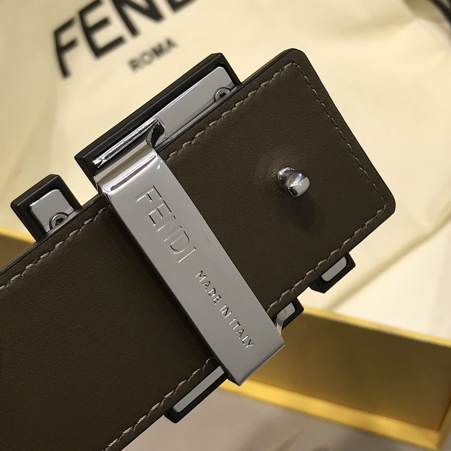 Fendi Men’s FF Gradient Buckle Belt In Black Epsom Calfskin With Silver Hardware 38mm
