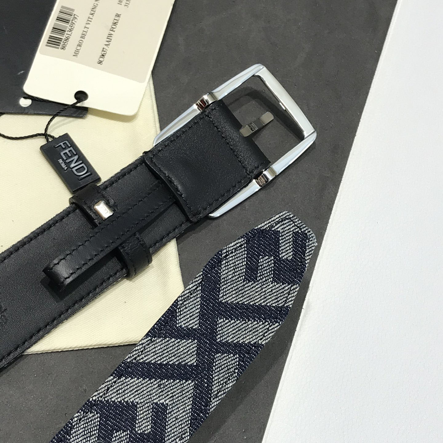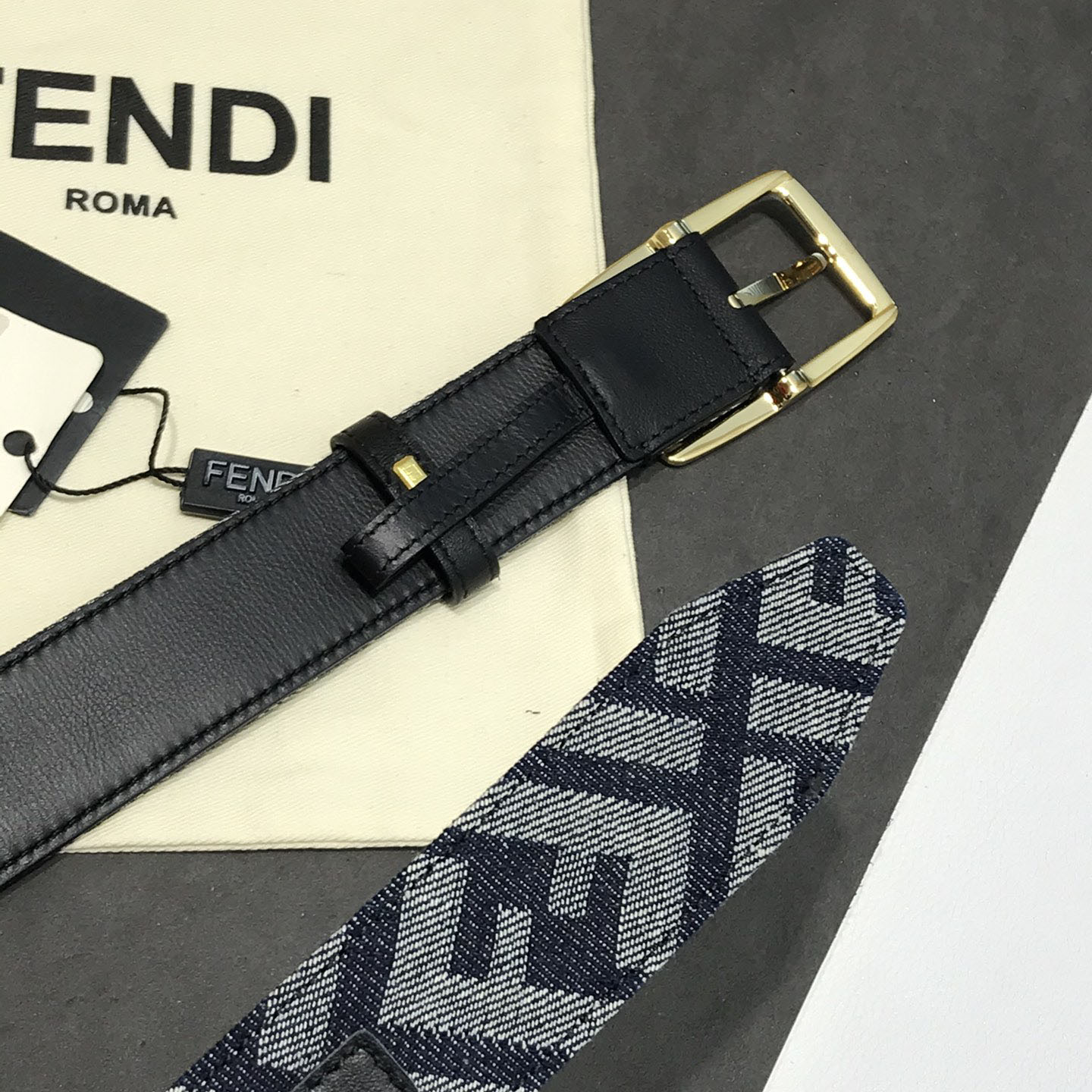 成为第一个“Fendi Men’s Rectangle Buckle Belt In Blue Denim FF Monogram With Gold/Silver Hardware 35mm” 的评价者