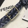 Fendi Men’s Rectangle Buckle Belt In Blue Denim FF Monogram With Gold/Silver Hardware 35mm