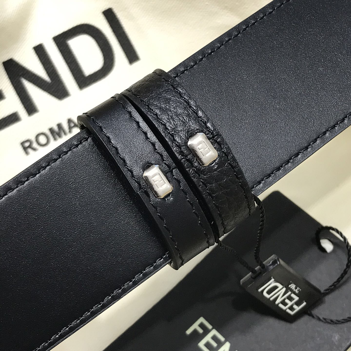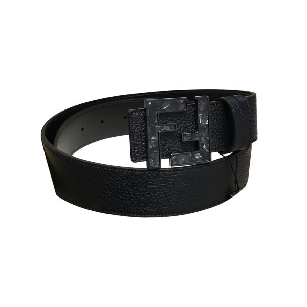 Fendi Men’s Square Buckle Belt In Black Calfskin With Black Hardware 38mm