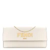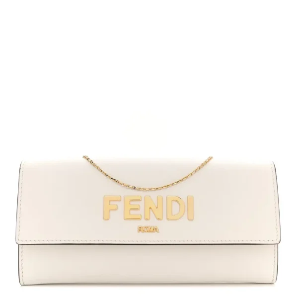 Fendi Metal Fendi Roma Logo Chain Continental Wallet White Kyoto Vitello Leather Gold Hardware