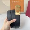 Ferragamo Men’s Rectangled Double Gancini Buckle Belt In Black Calfskin With Gold/Silver Hardware 35mm