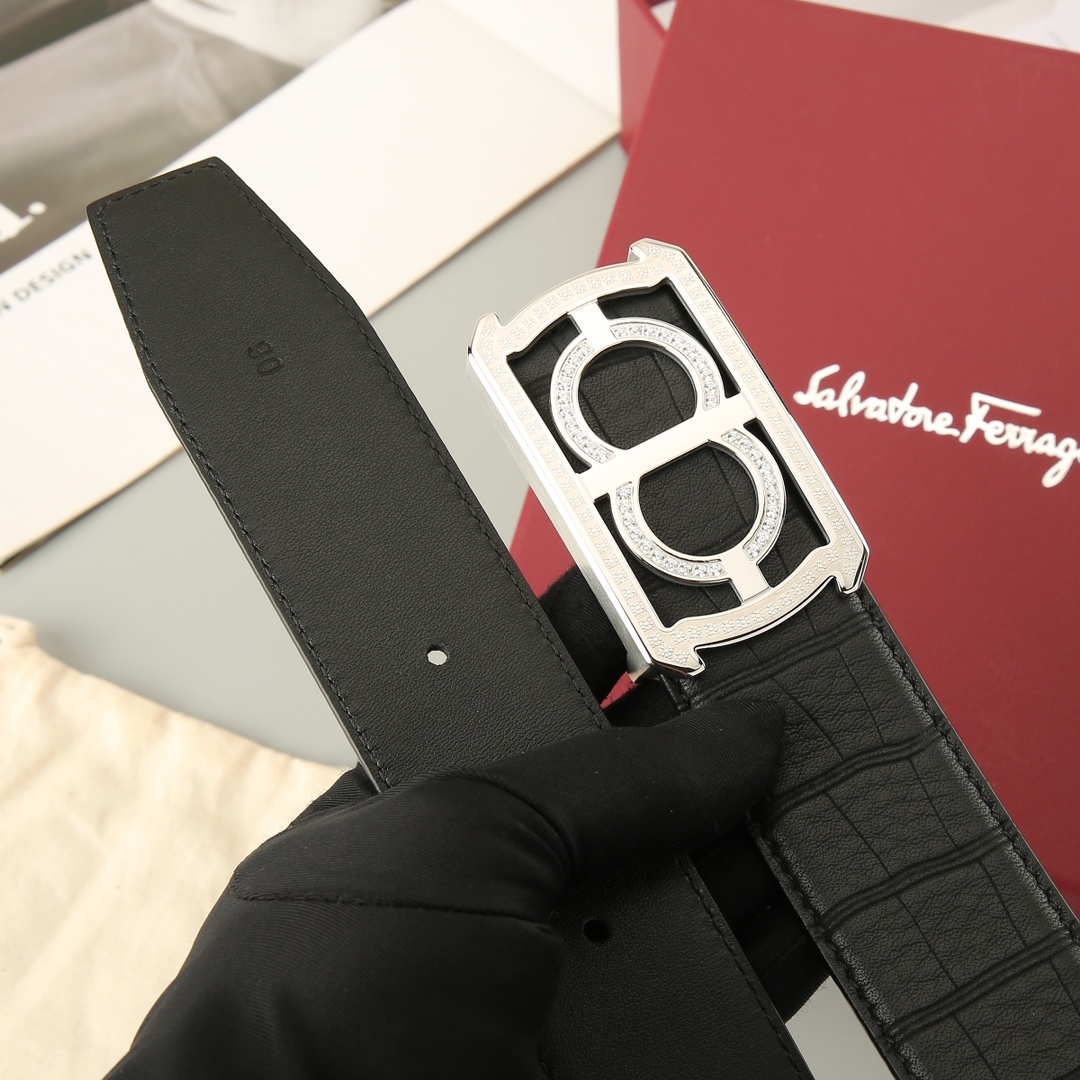 成为第一个“Ferragamo Men’s Square Buckle With Crystal Belt In Black Crocodile-Embossed Calfskin With Gold/Silver Hardware 38mm” 的评价者