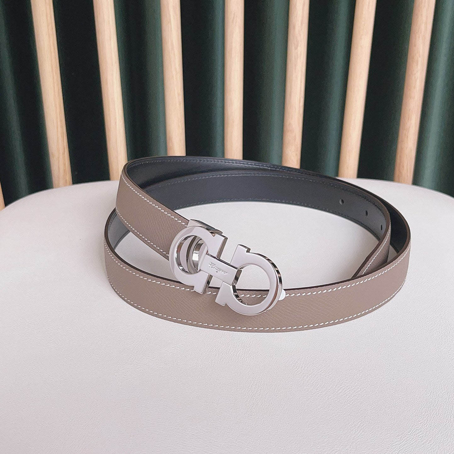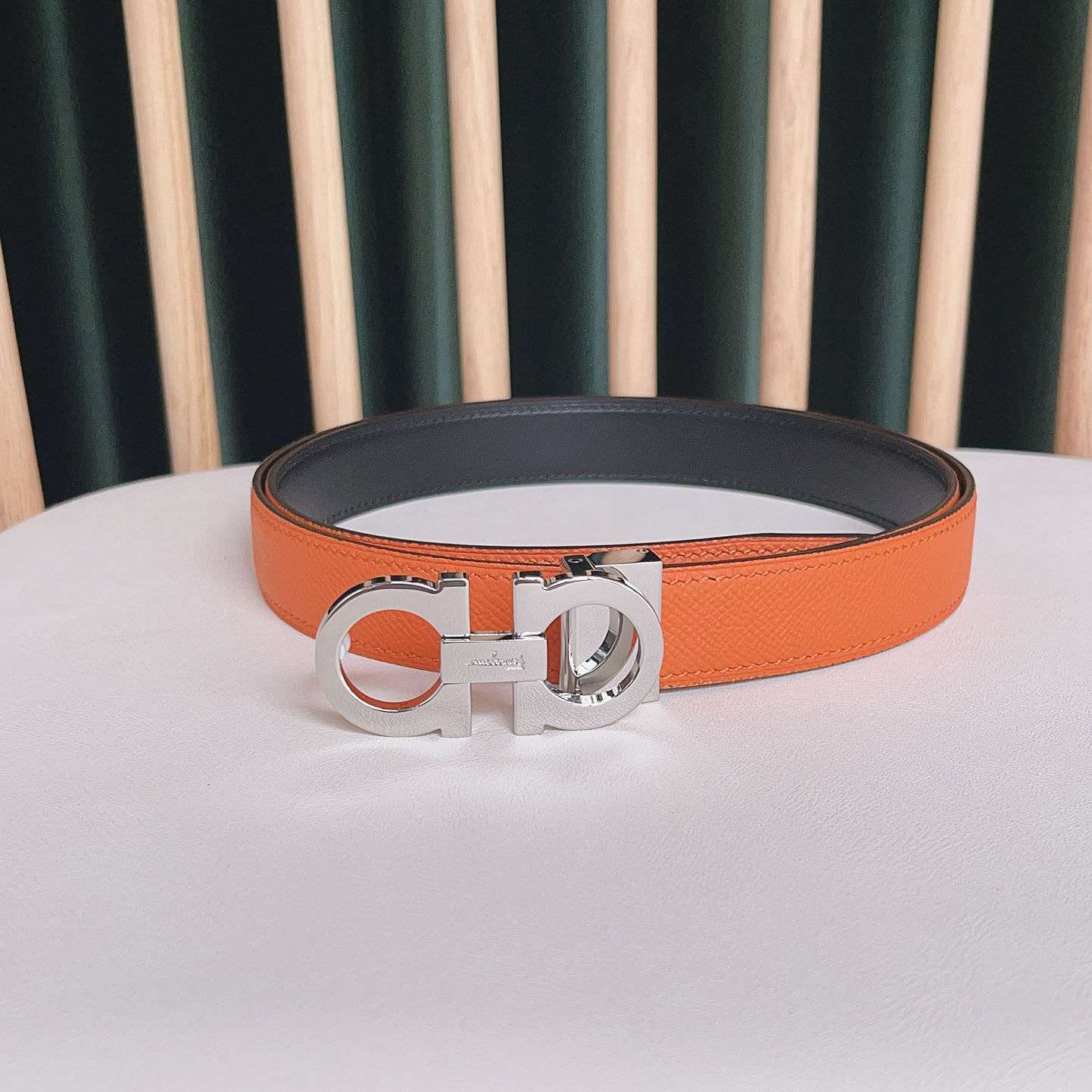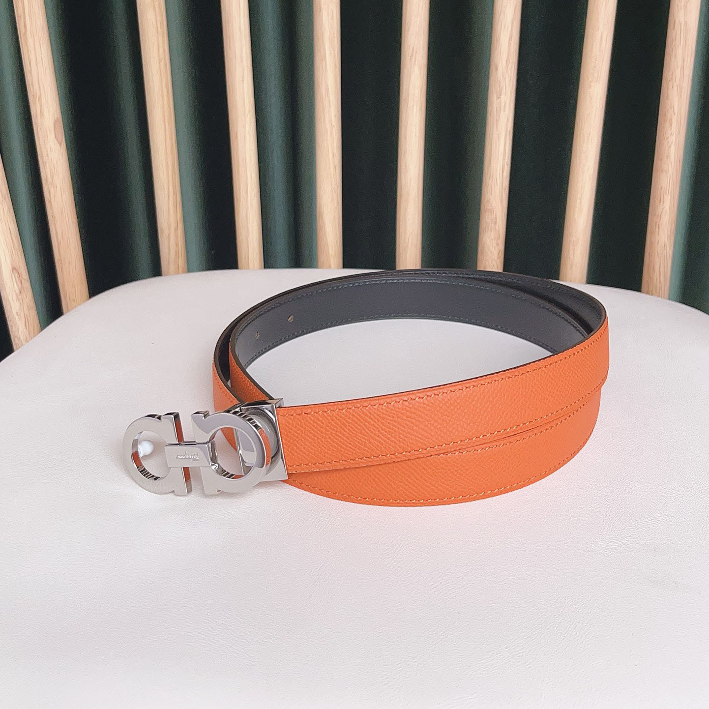 Ferragamo Women’s Double Gancini Reversible Belt In Red/Grey/Orange/Brown/Black Epsom Leather With Gold/Silver Hardware 25mm