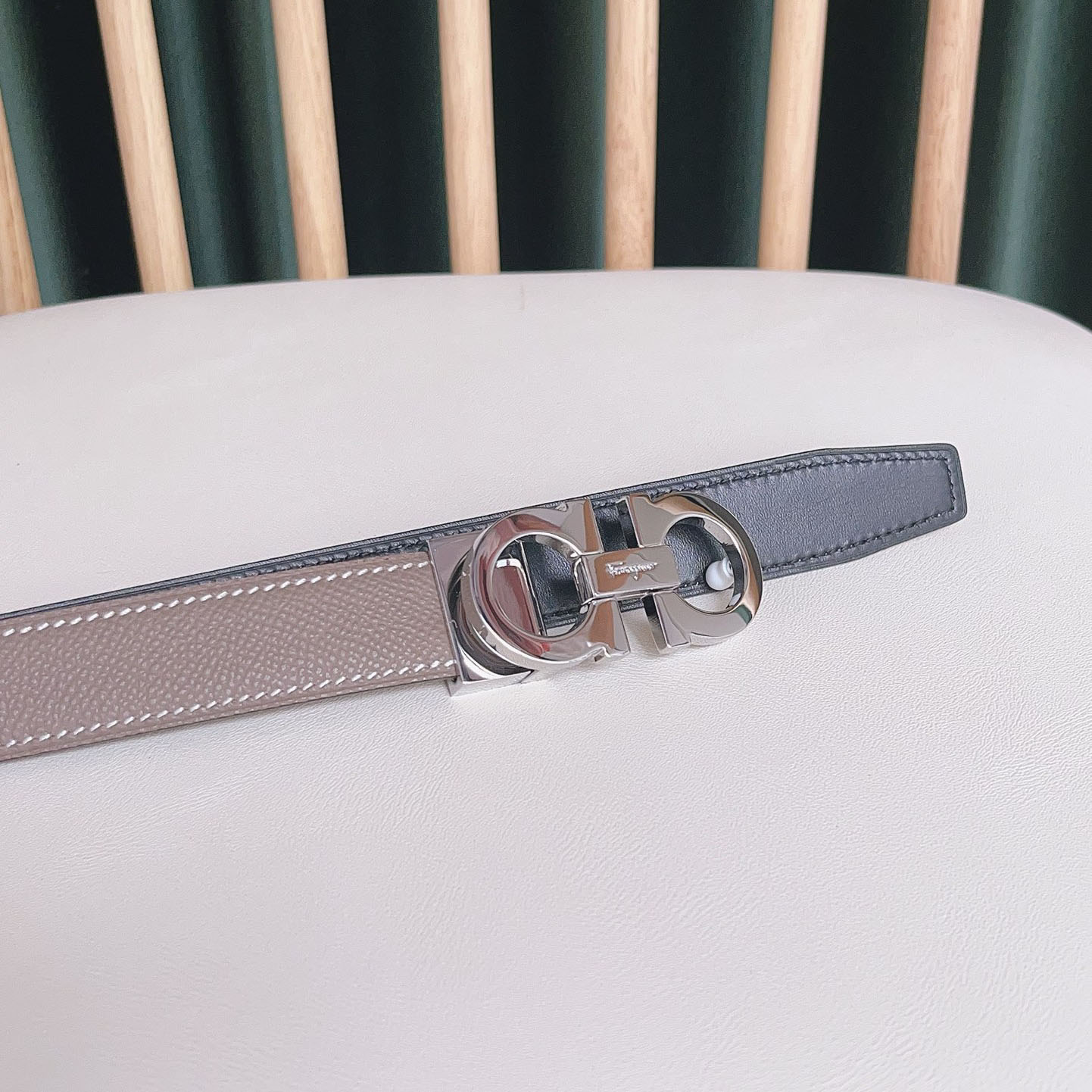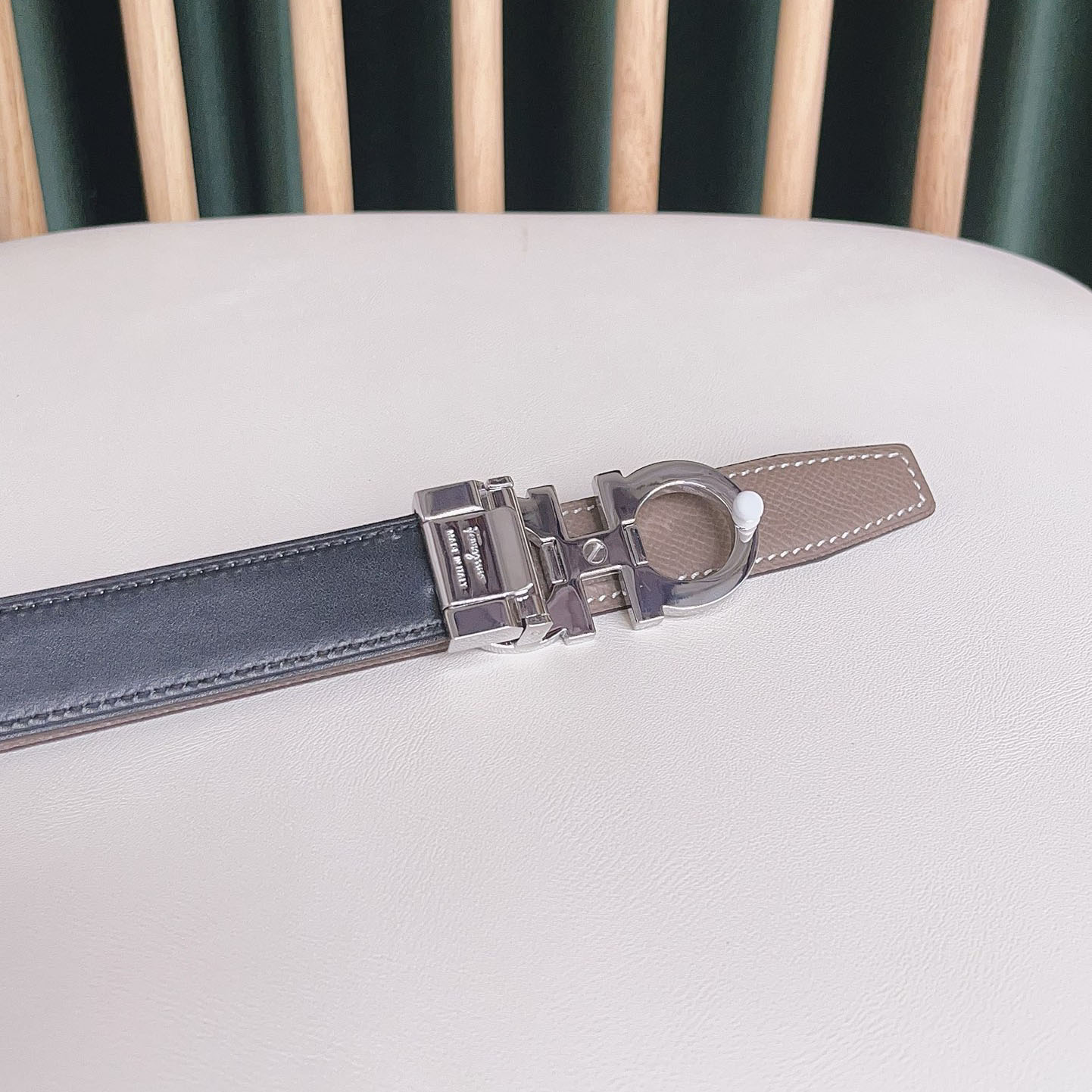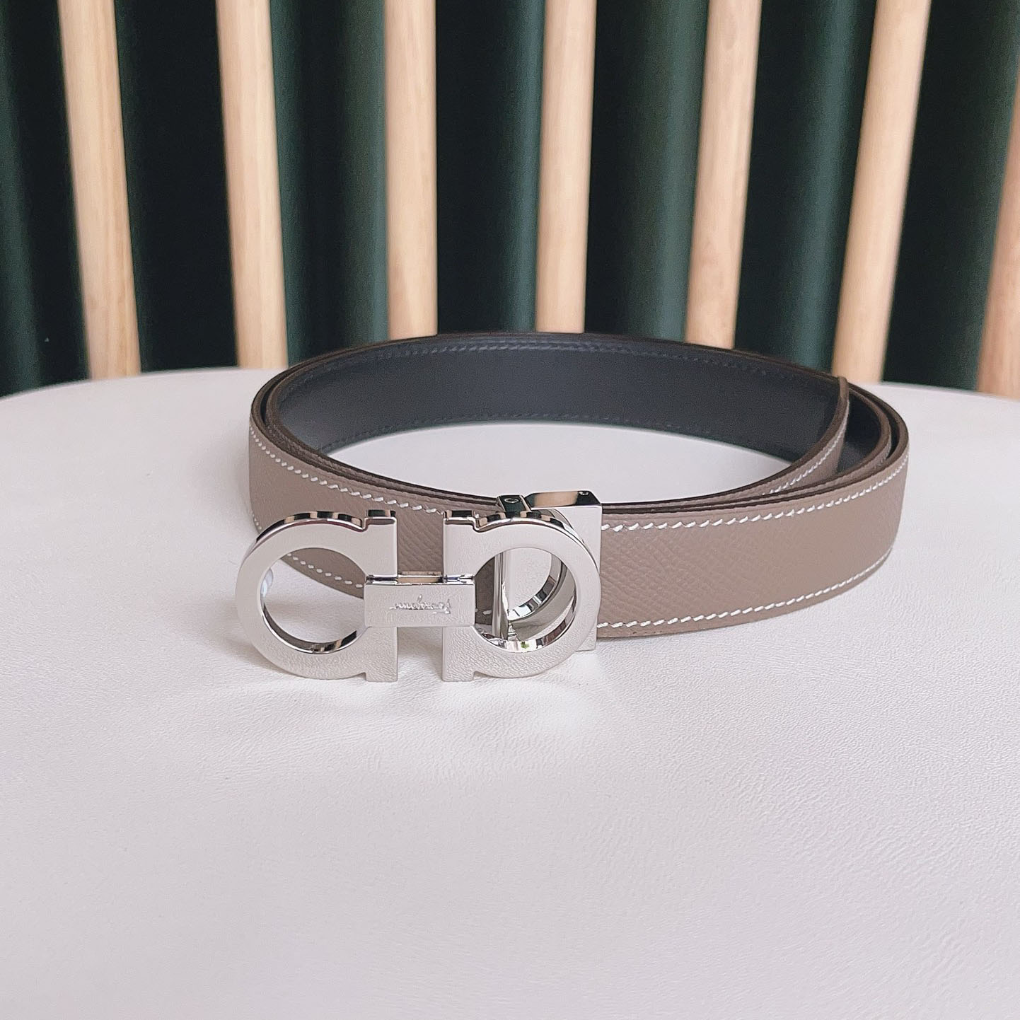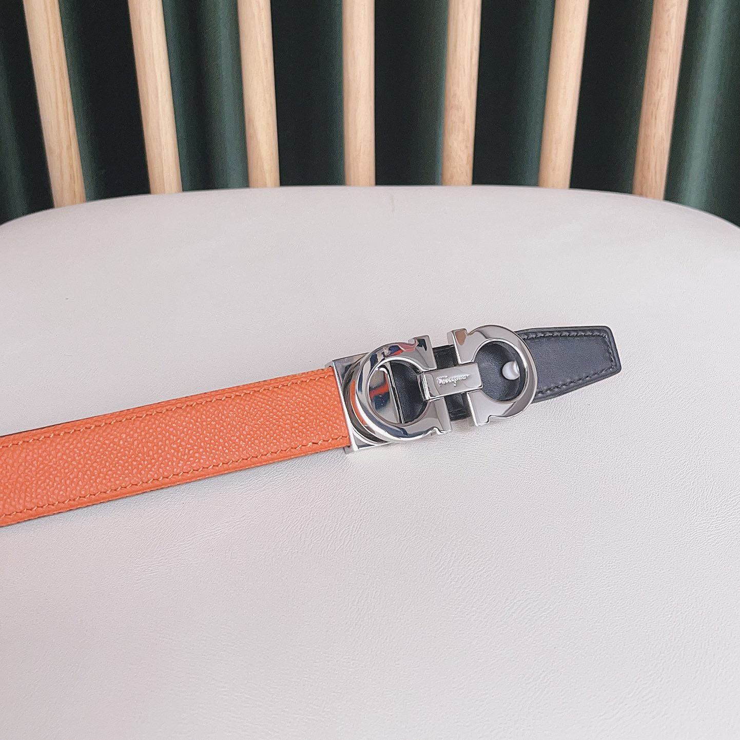 Ferragamo Women’s Double Gancini Reversible Belt In Red/Grey/Orange/Brown/Black Epsom Leather With Gold/Silver Hardware 25mm