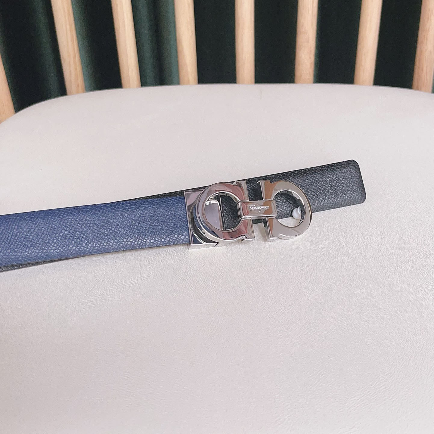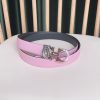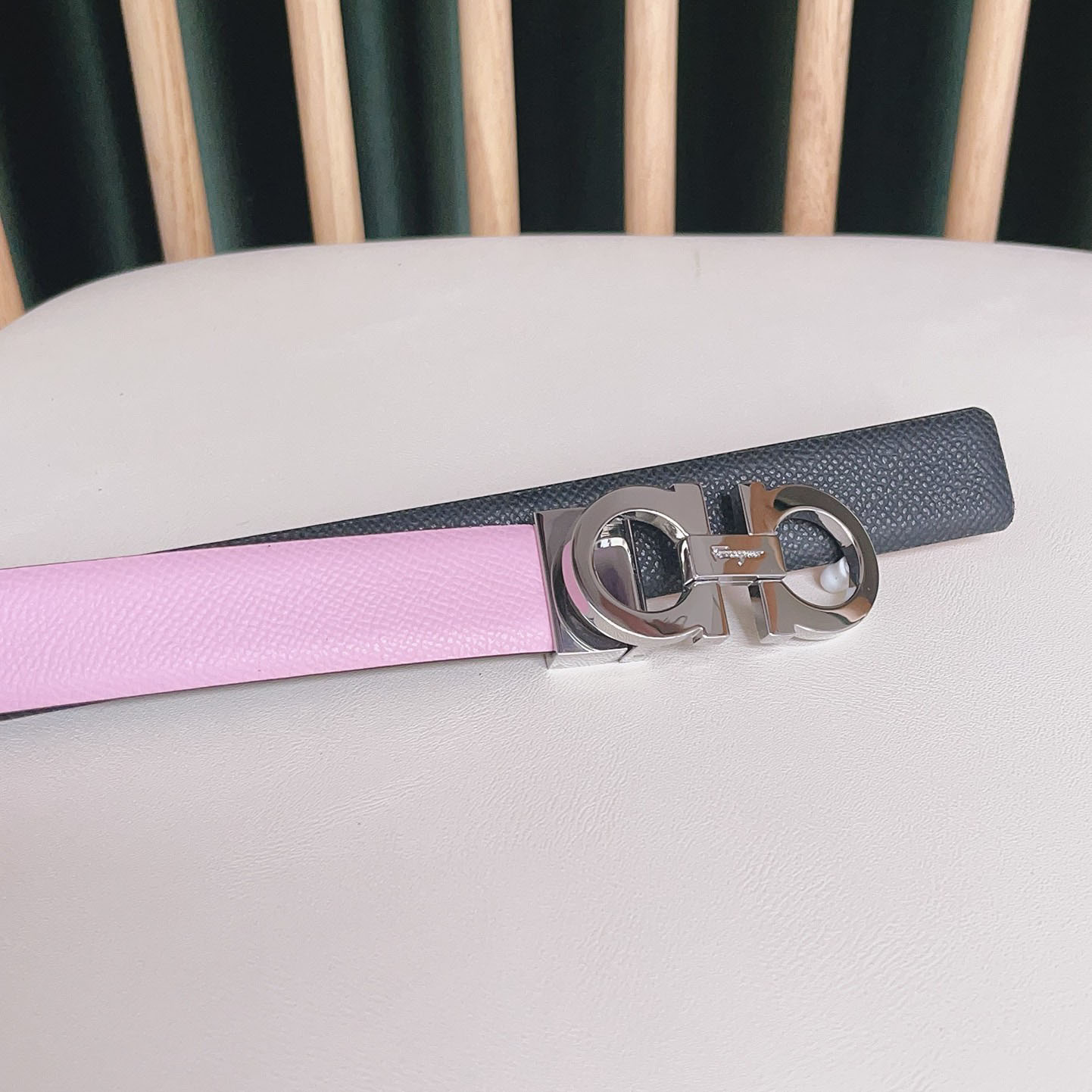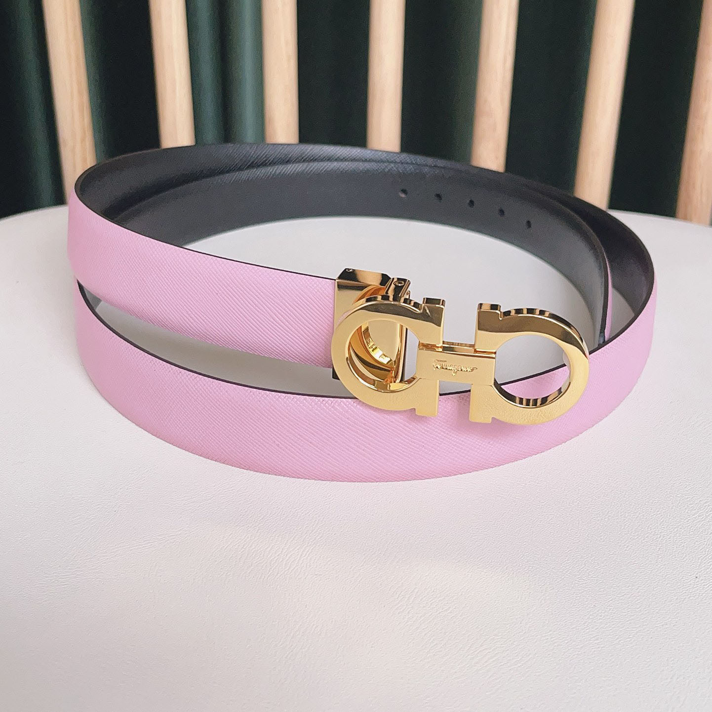 Ferragamo Women’s Reversible Double Gancini Belt In Pink/Blue/Pale Pink Calfskin With Gold/Silver Hardware 25mm