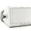 This Goyard Mini Saigon Bag Precious Metals edition features Goyardine canvas with silver hardware. Its structured silhouette is accented with wooden side panels and leather top handles. The compact size makes it ideal for carrying essentials while maintaining elegance. A detachable strap enhances versatility, perfect for crossbody or hand carry. The unique metallic finish adds a contemporary flair to this classic design.