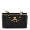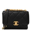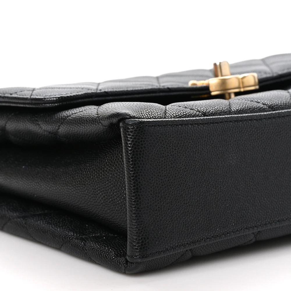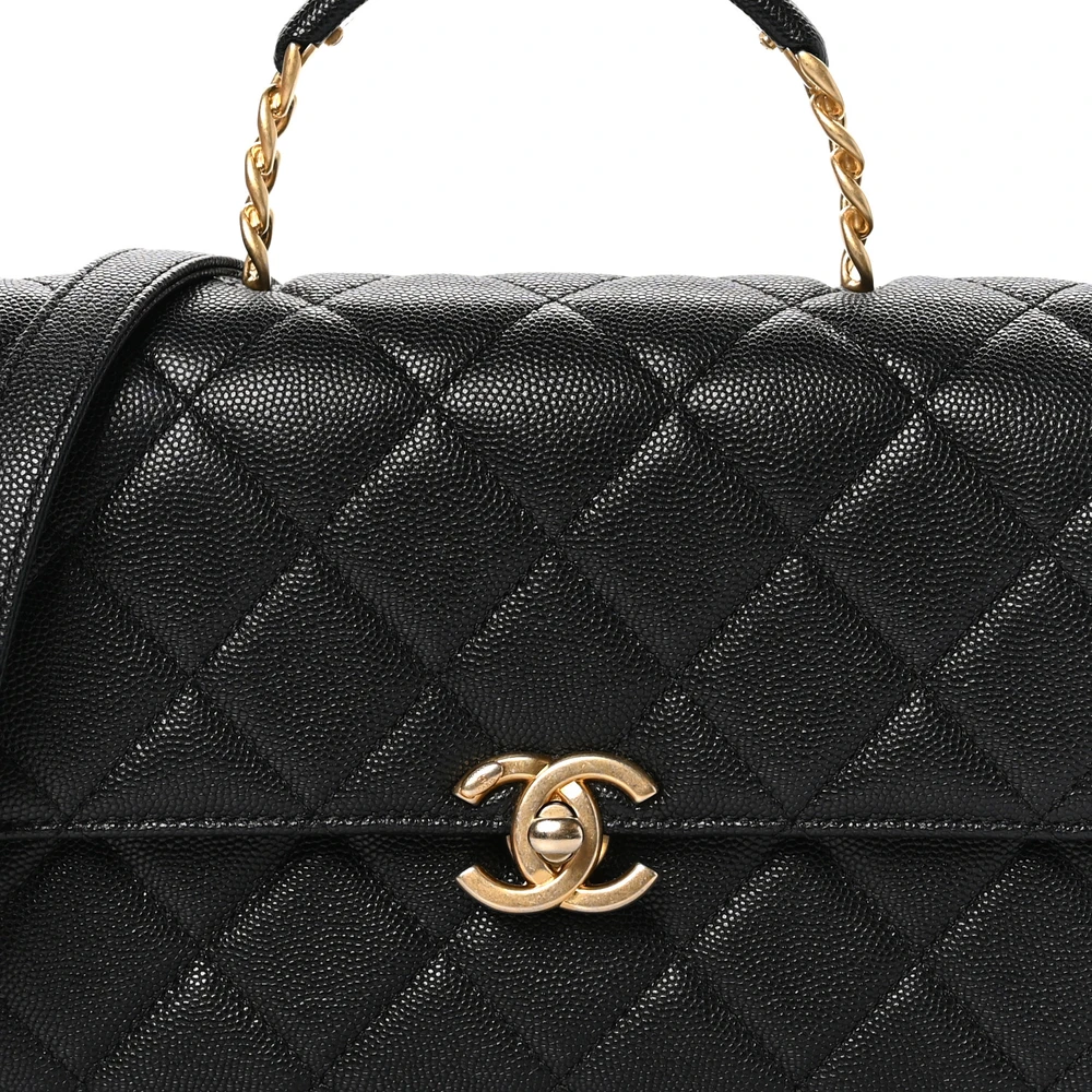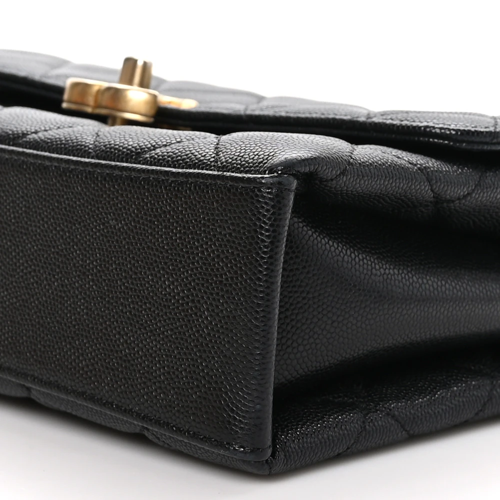 This Chanel Carry Me Top Handle Flap Medium in Black Quilted Caviar Leather with Aged Gold Hardware is a sophisticated and functional handbag. The durable caviar leather and quilted design ensure timeless appeal. Aged gold hardware adds vintage-inspired elegance, making it perfect for versatile styling. Spacious yet refined, it offers ample room for essentials. The top handle and flap closure provide a structured and polished silhouette. A luxurious choice for work or leisure.