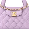 This Chanel Kelly Shopper Nano in Lilac Quilted Shiny Aged Calfskin Leather with Aged Gold Hardware is a compact and luxurious accessory. The aged calfskin leather adds texture and vintage charm, while the lilac hue offers a fresh and feminine touch. Aged gold hardware complements its timeless design, making it perfect for any occasion. The petite size is ideal for carrying essentials, blending practicality with style. The structured silhouette adds a touch of sophistication. A chic choice for those who appreciate classic elegance.