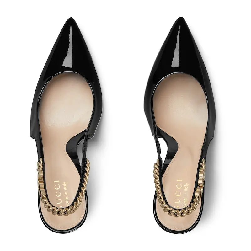 Gucci black patent leather pointed heels high heels shoes Rear lace up high heels
