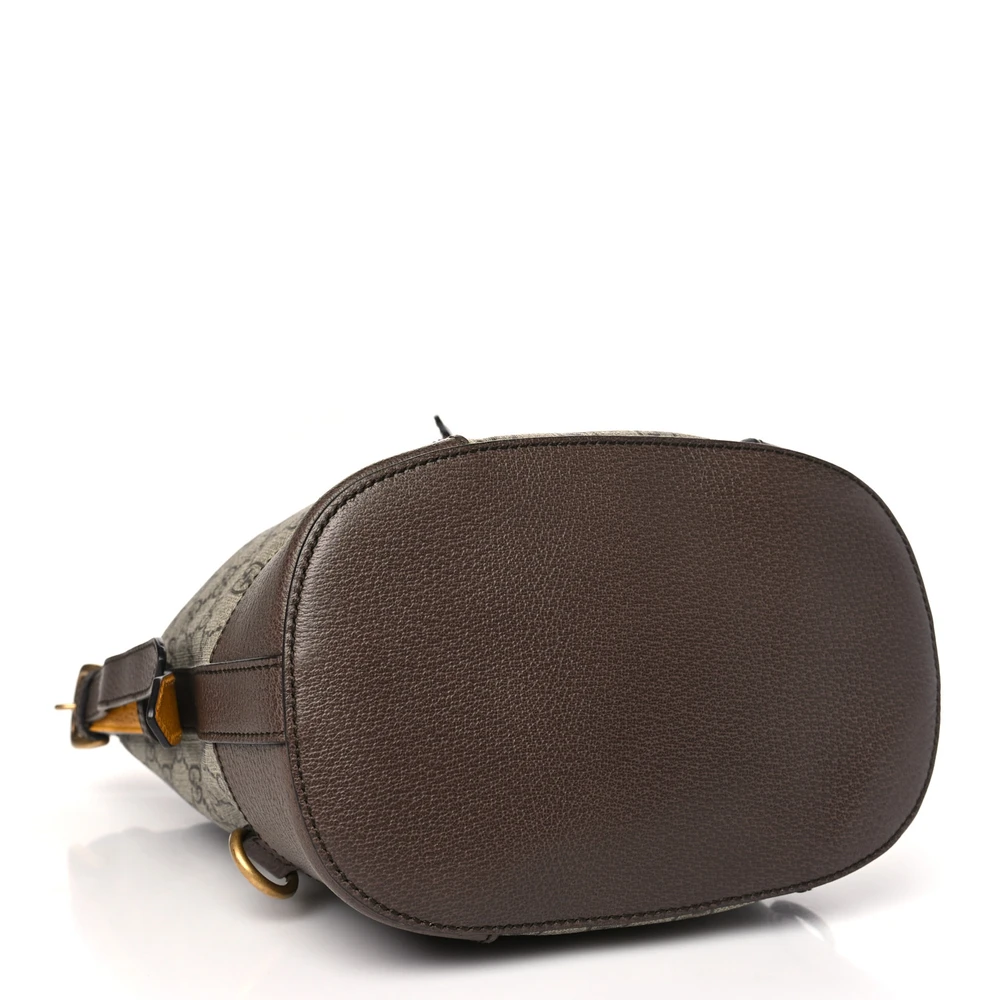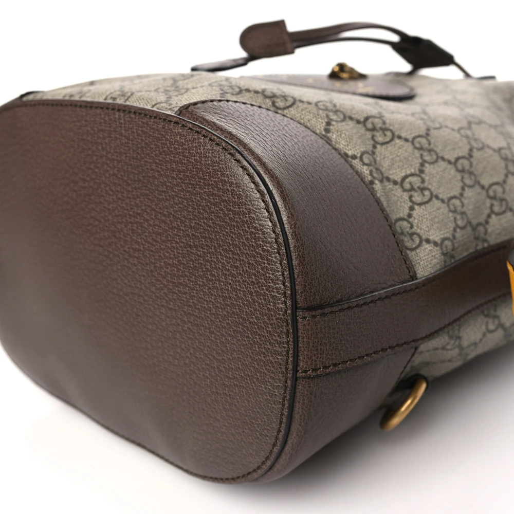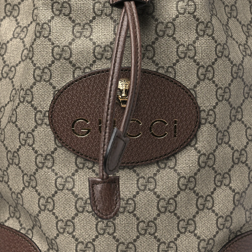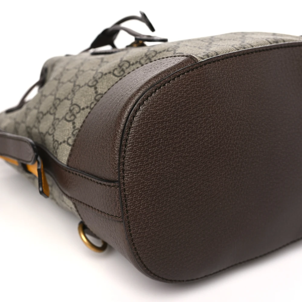 Gucci Medium Neo Vintage Drawstring Bucket Backpack New Acero Crop GG Supreme Monogram Canvas Gold Hardware