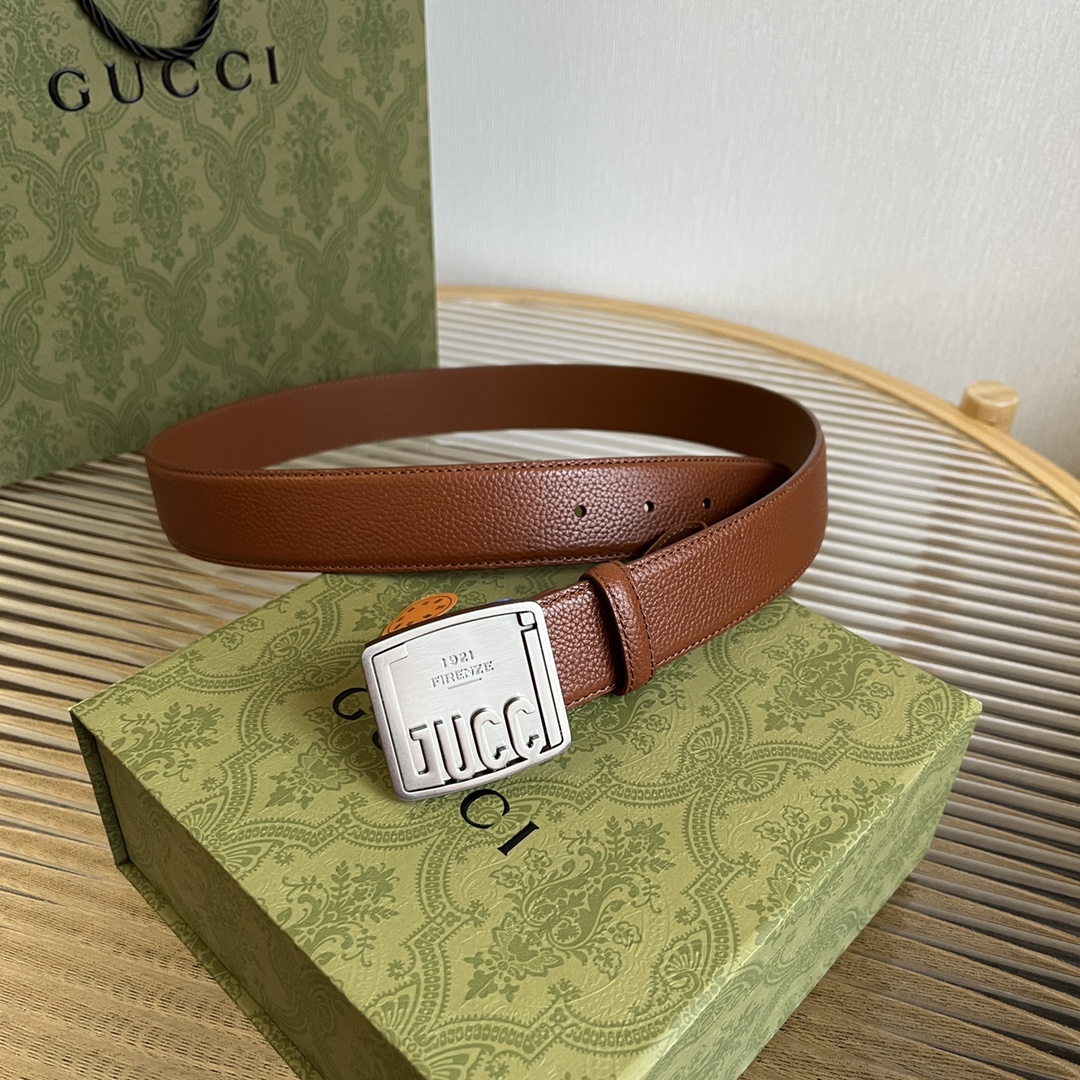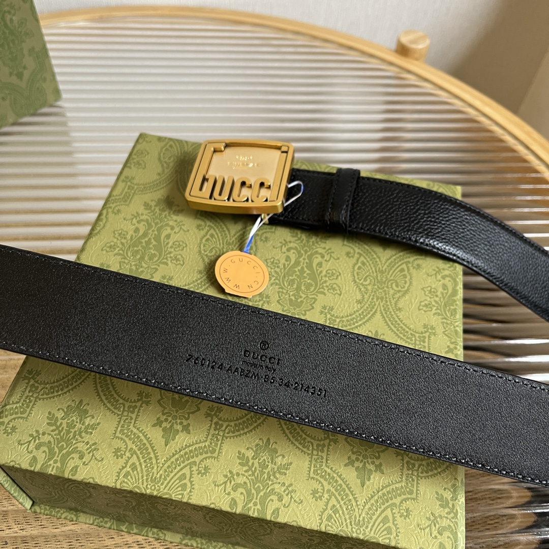 Gucci Men’s Plaque Buckle Belt In Black/Brown Grained Calfskin With Gold/Silver Hardware 35mm