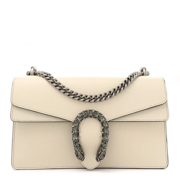 Gucci Small Dionysus Shoulder Bag Mystic White Textured Calfskin Leather & Crystal Aged Silver Hardware