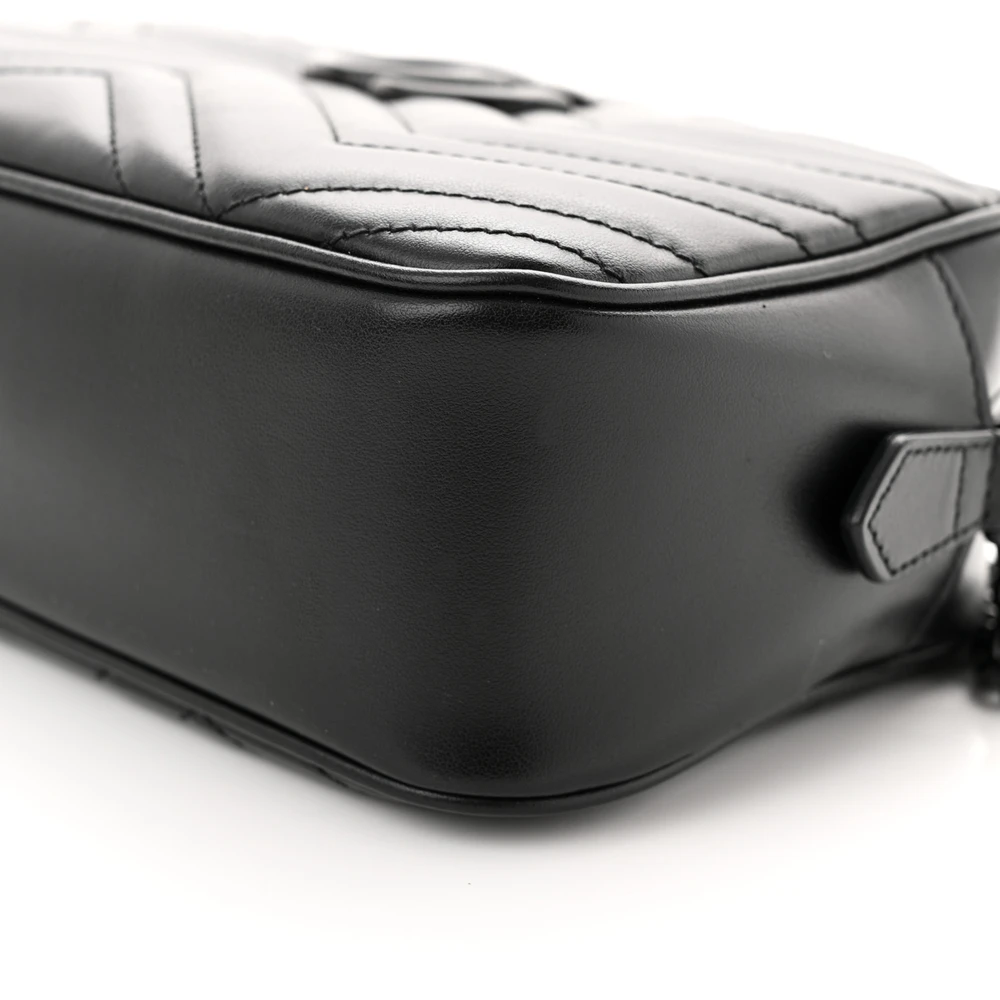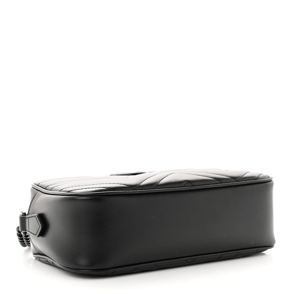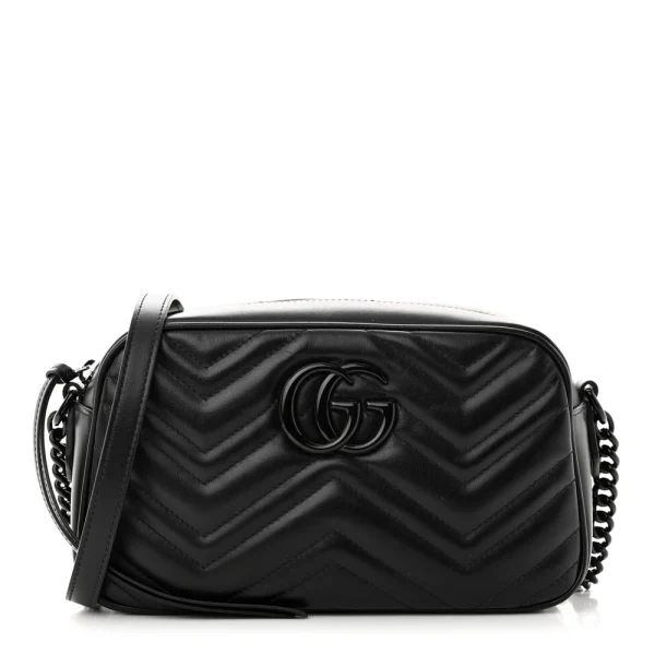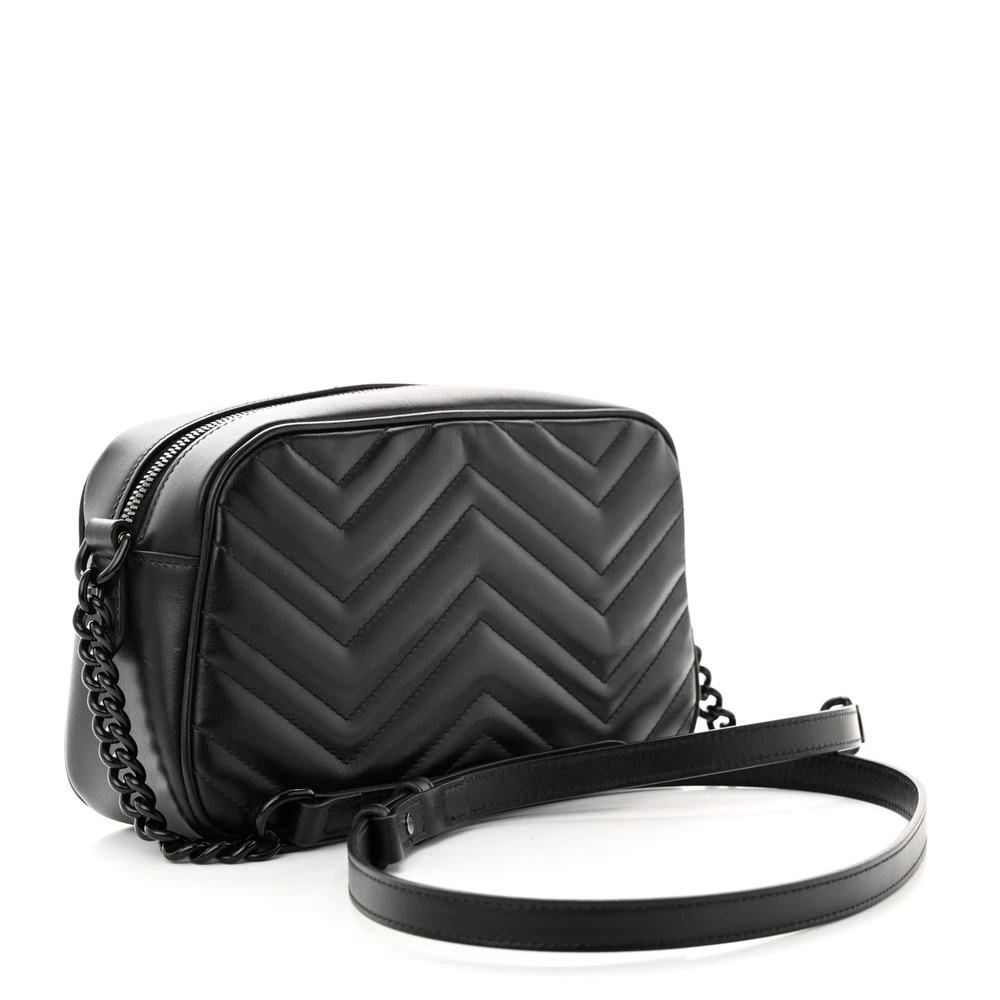 Gucci Small GG Marmont Chain Shoulder Bag Black Calfskin Leather Black Hardware