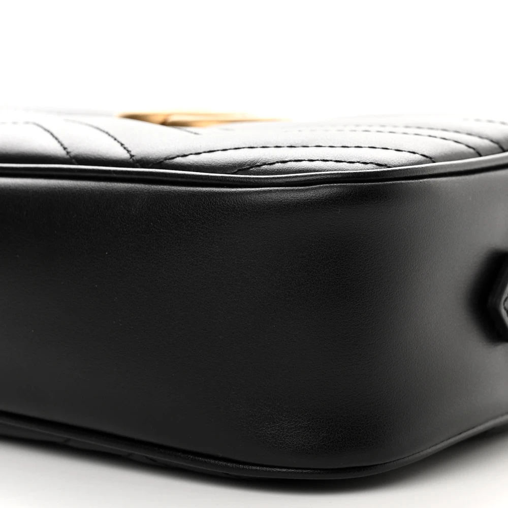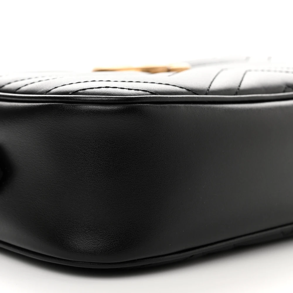 Gucci Small GG Marmont Chain Shoulder Bag Black Calfskin Matelassé Leather Gold Hardware