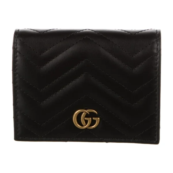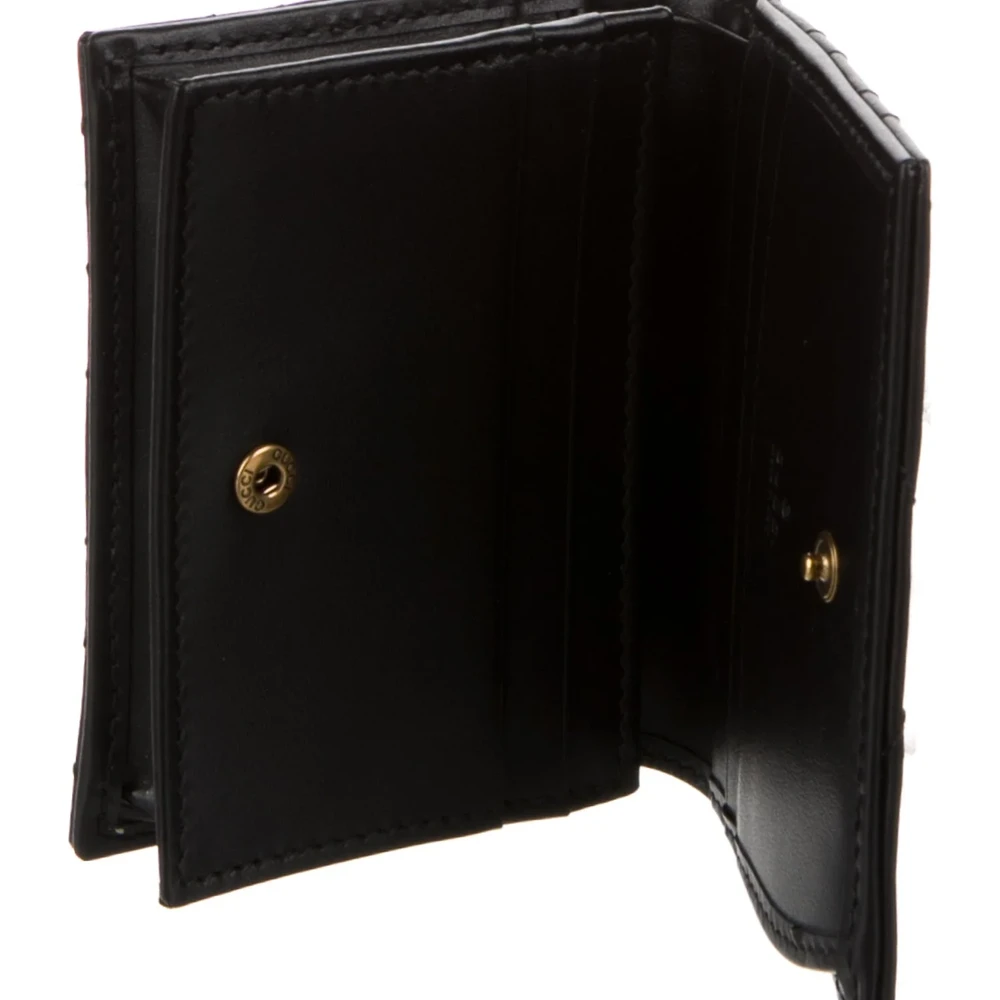 Gucci Small Marmont Logo Compact Wallet Black GG Canvas Gold Hardware