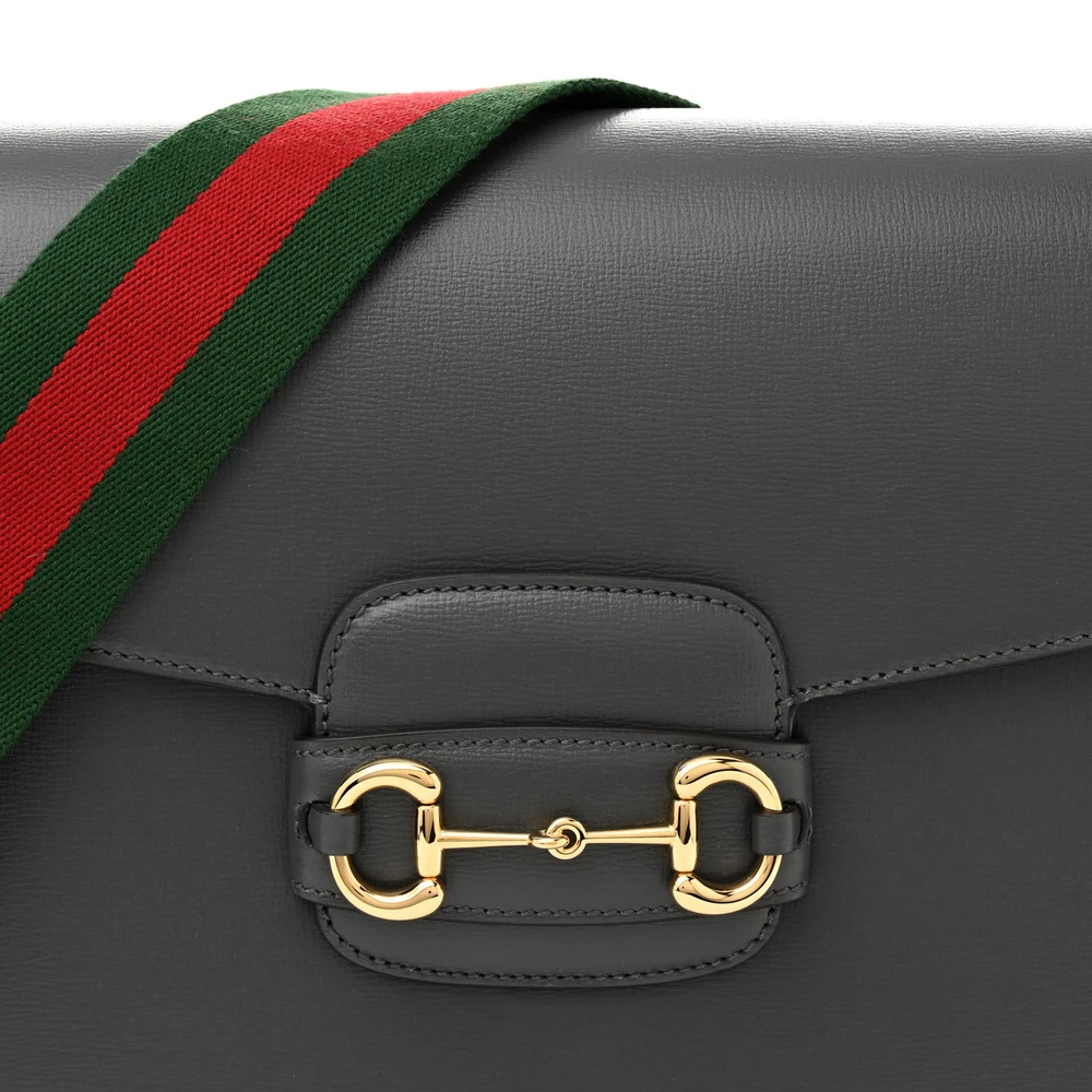 Gucci Small Web Horsebit 1955 Shoulder Bag Graphite Grey Azalea Calfskin Leather Gold Hardware