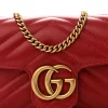 Gucci Super Mini GG Marmont Shoulder Bag Hibiscus Red Calfskin Matelassé Leather Gold Hardware
