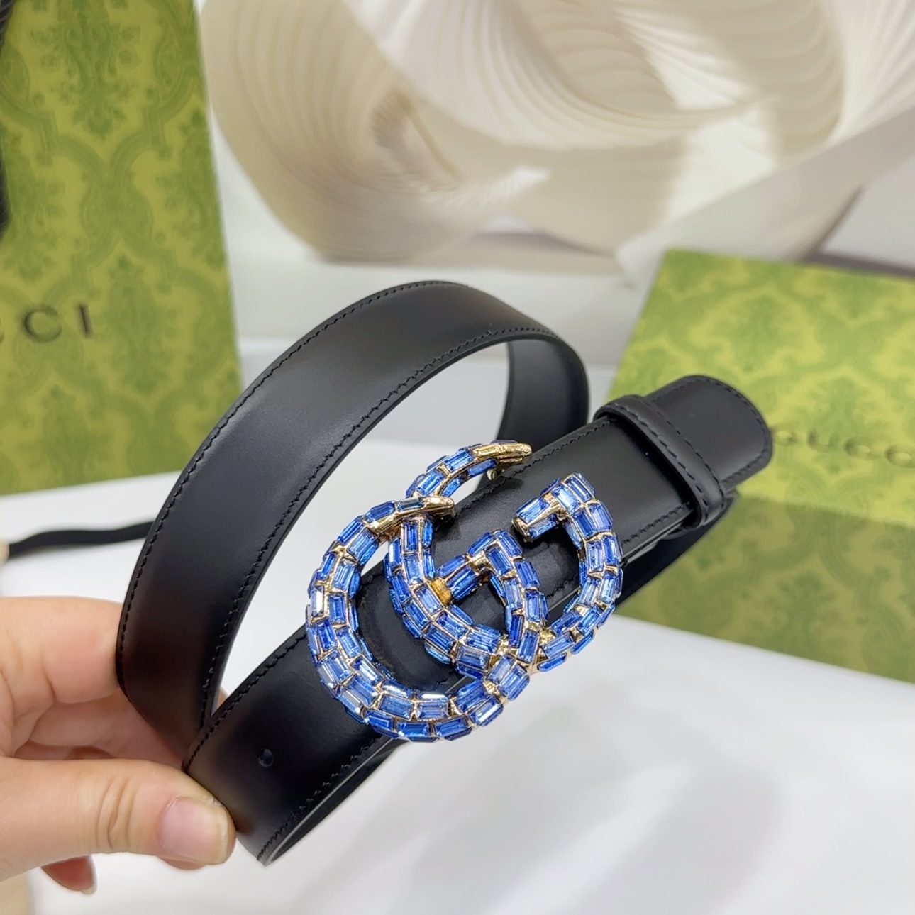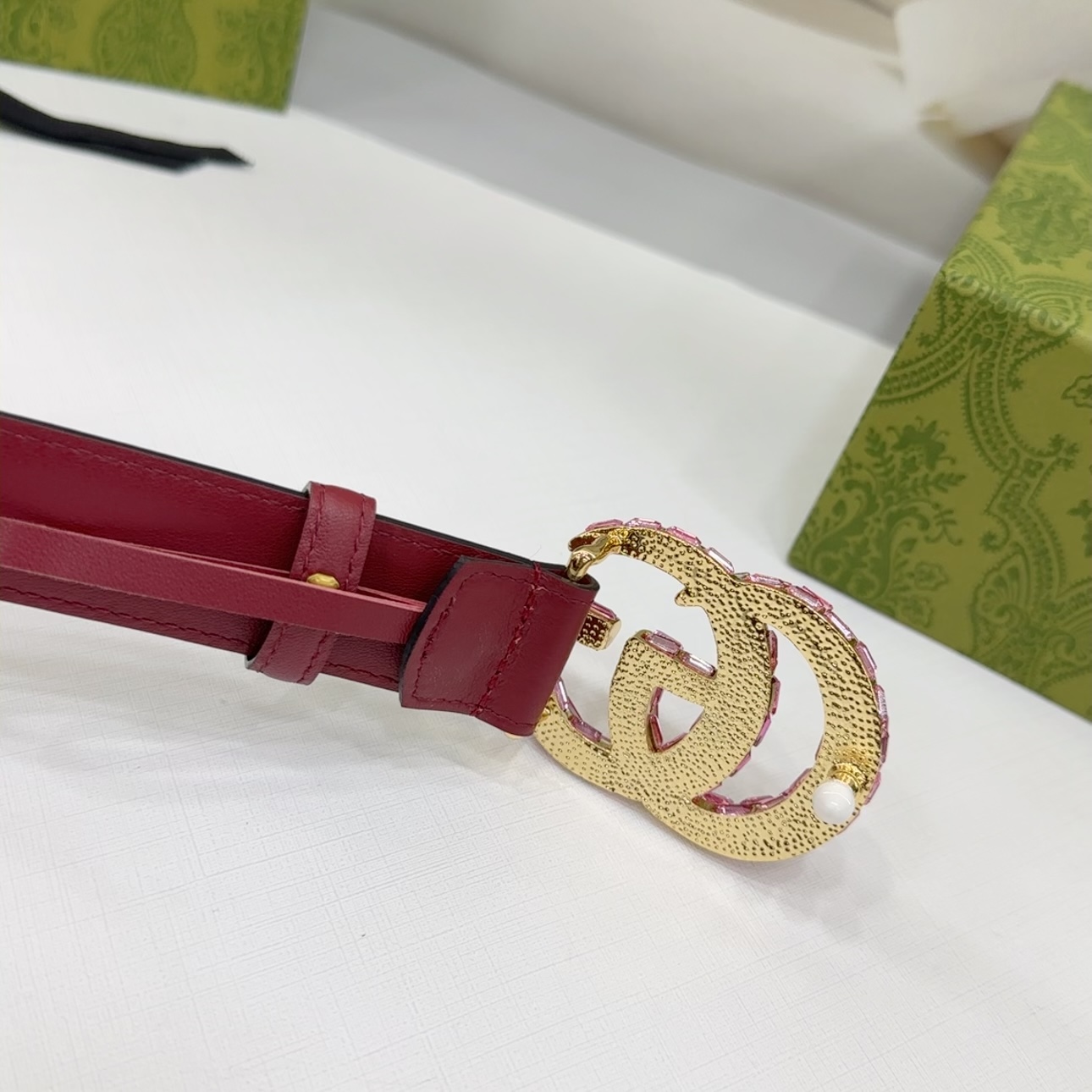 成为第一个“Gucci Women’s GG Buckle With Crystals Marmont Thin Belt In Black/Red/Khaki/White/Grey/Green Smooth Calfskin With Gold/Silver Hardware 30mm” 的评价者