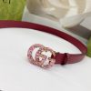 Gucci Women’s GG Buckle With Crystals Marmont Thin Belt In Black/Red/Khaki/White/Grey/Green Smooth Calfskin With Gold/Silver Hardware 30mm