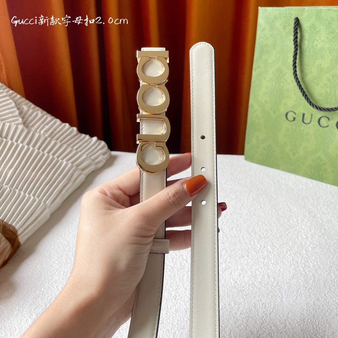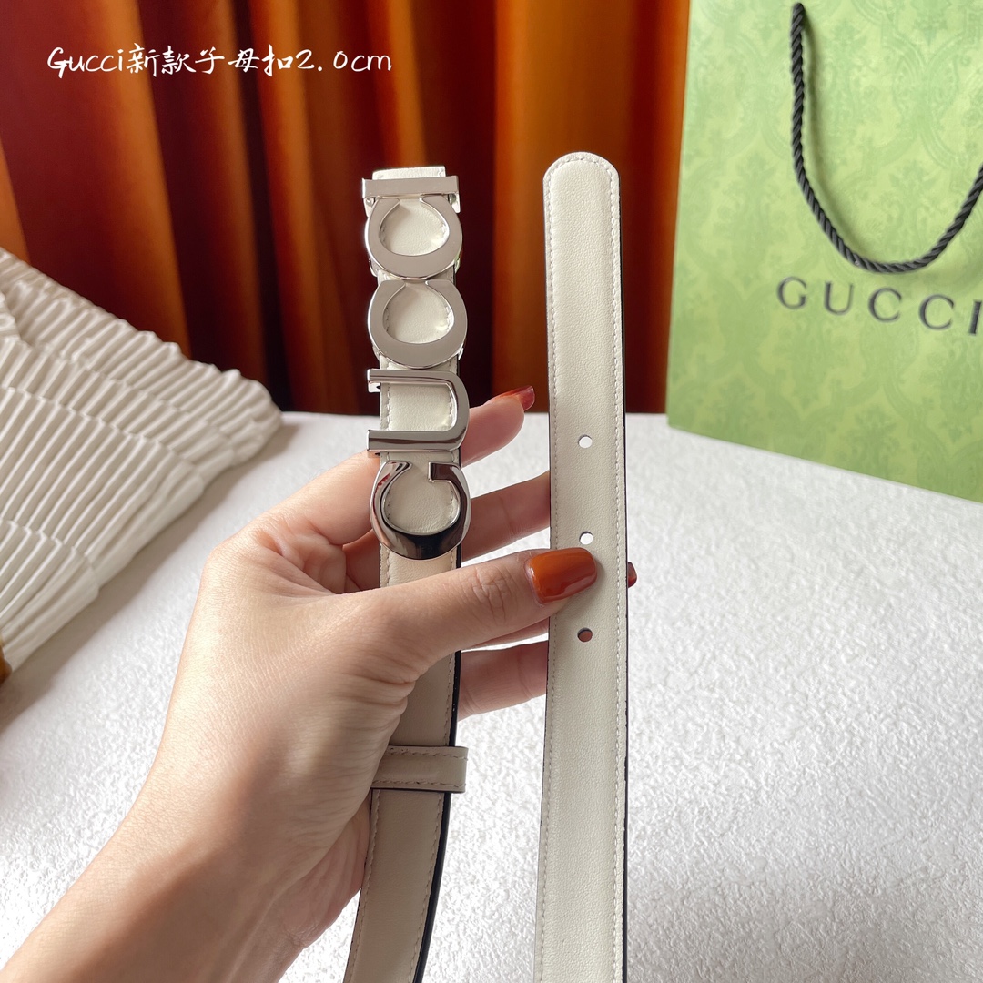 Gucci Women’s GUCCI Buckle Belt In White/Black Smooth Calfskin With Gold/Silver Hardware 20mm